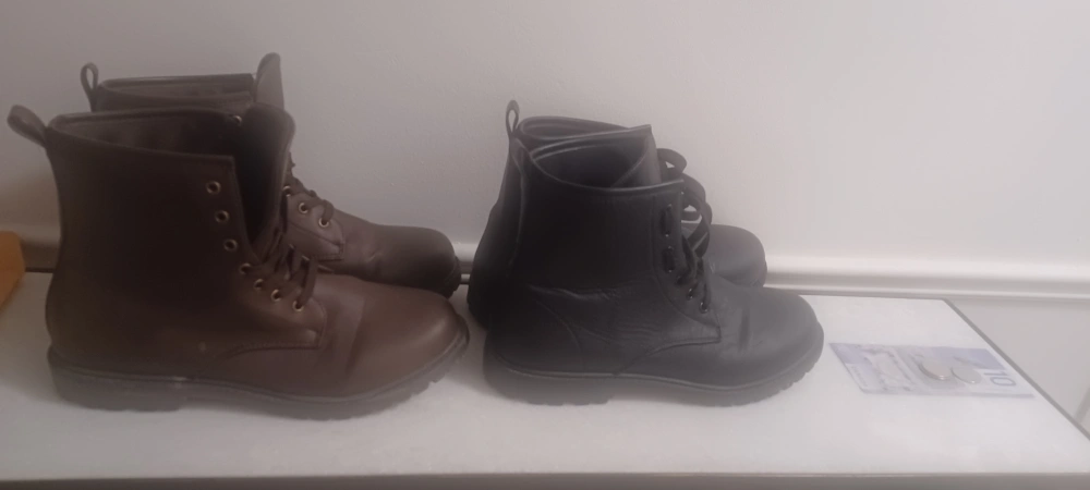 Two pairs of women's ankle boots. Brown and black colour. Lace-up closure. Great for everyday wear.