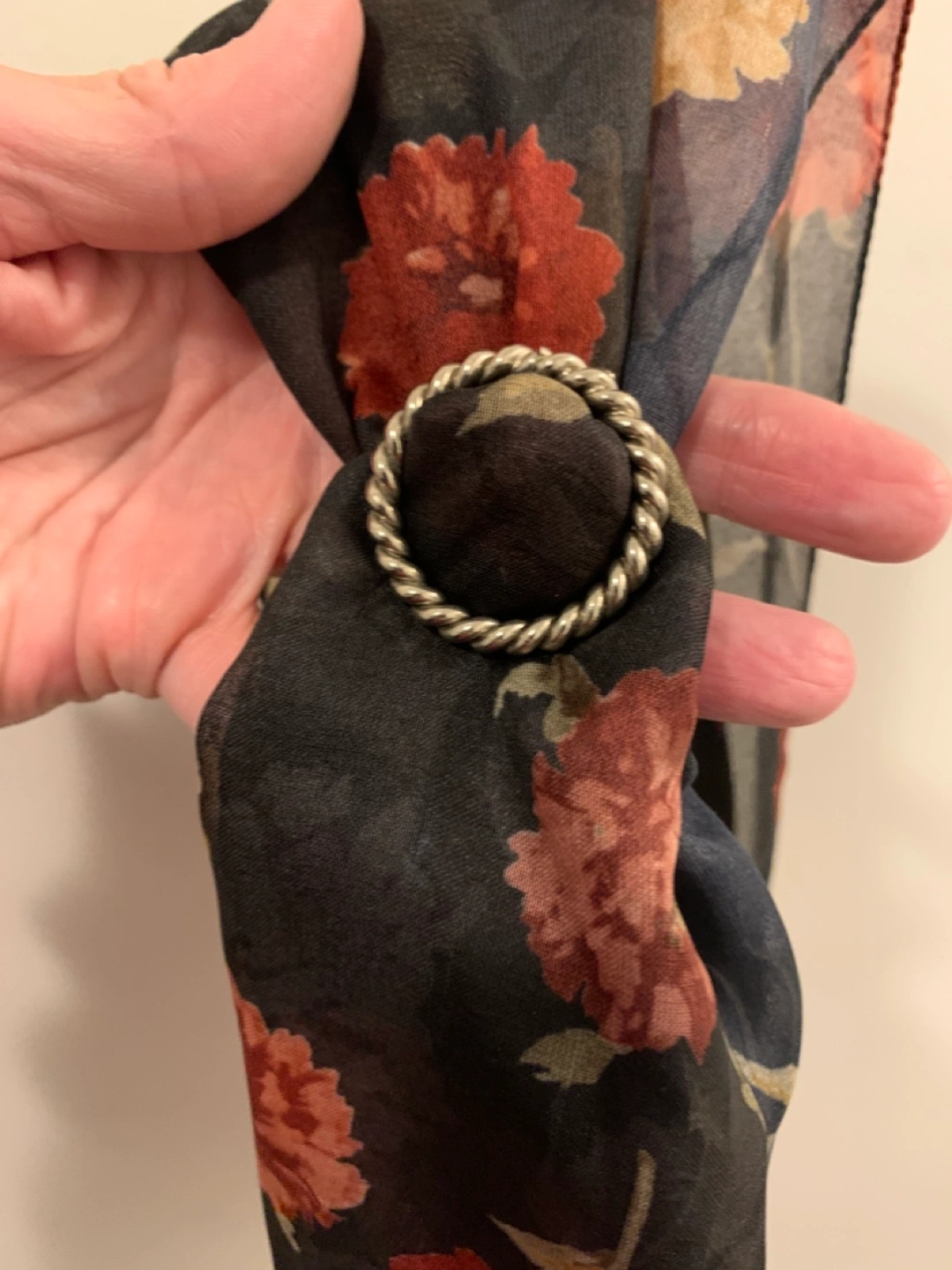 Vintage Round scarf clip with wrapped detailing on edges. Classic and elegant. Unsure of materials as I can’t read the stamp. Excellent condition. Pick up in Roncesvalles. No holds please. Same Day/Next Day pick up preferred.