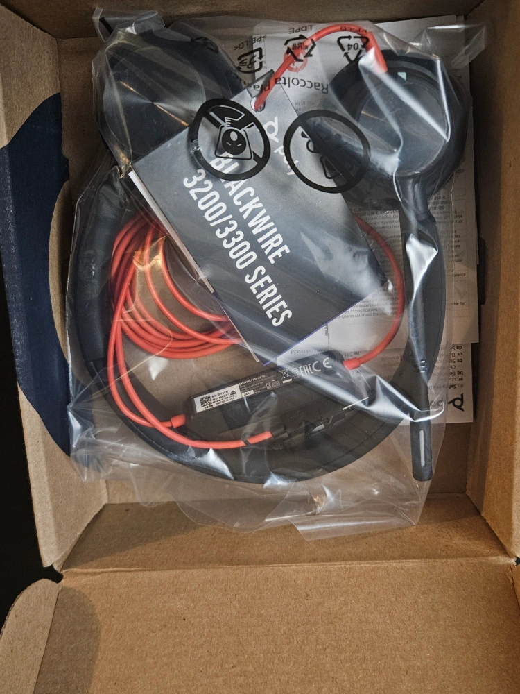 Brand new, unopened Poly Blackwire 3320 headset. Microsoft Teams certified. Includes USB-A connector. Wired headset.