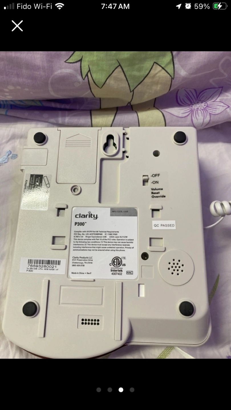 Corded phone with large buttons and photo slots. Features include volume control and a memory function. Excellent for seniors or those with vision impairment. ( slightly Used but in good condition).