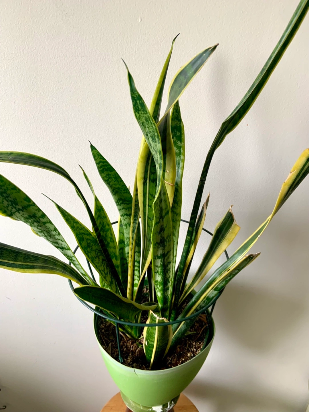 Healthy snake plant, multiple leaves. Green plastic pot. Wire plant support. Ready for a new home. Low-maintenance snake plant, perfect for beginners! This fully rooted, hardy plant thrives in low light and is incredibly easy to care for. Simply place it near, but not directly on, a window during the winter to avoid cold damage. Water sparingly—about once every two weeks—and allow the soil to dry out completely between waterings. Overwatering can harm the plant, but this one thrives on minimal attention! ▶️Price firm ▶️pick up only and final sale ▶️exact cash payment. ▶️kindly respond when ready to purchase and pick up.