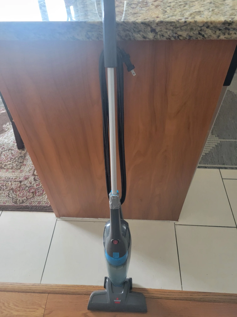 Lightweight stick vacuum, ideal for quick cleanups. Features a detachable hand-held unit. Good for hard floors and carpets. Power long cord included.