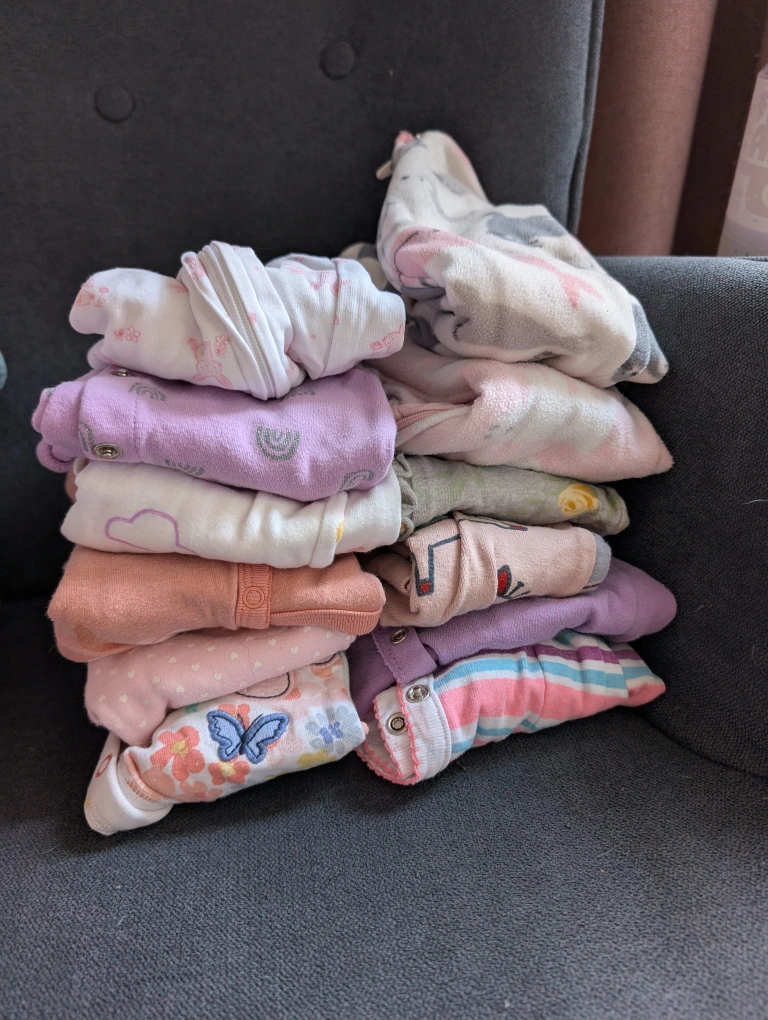 Adorable bundle of baby girl sleepers. Various colours and patterns. Sizes newborn. Perfect for a growing baby.12 total all newborn size. Pickup only St Clair East and O'Connor
