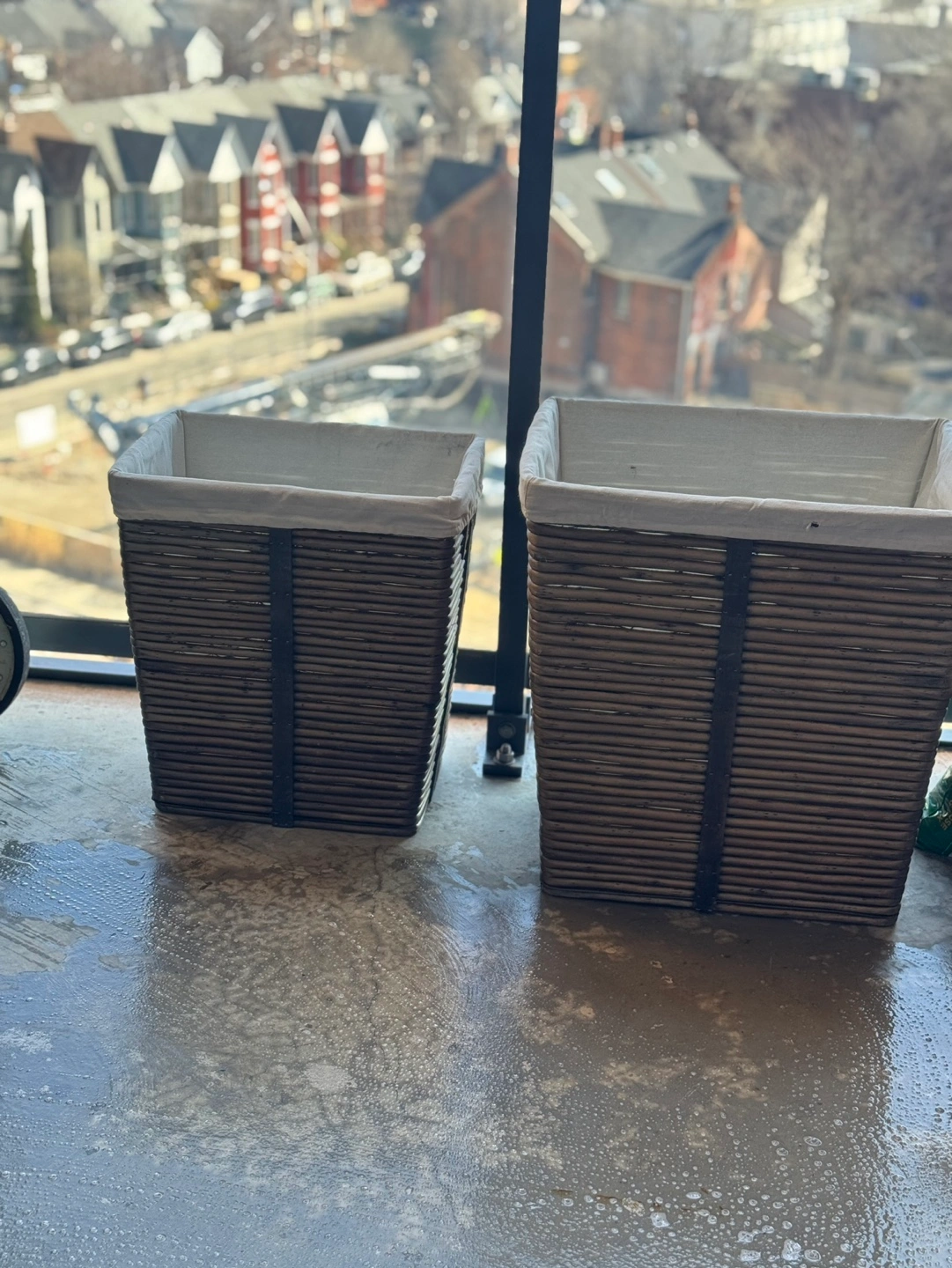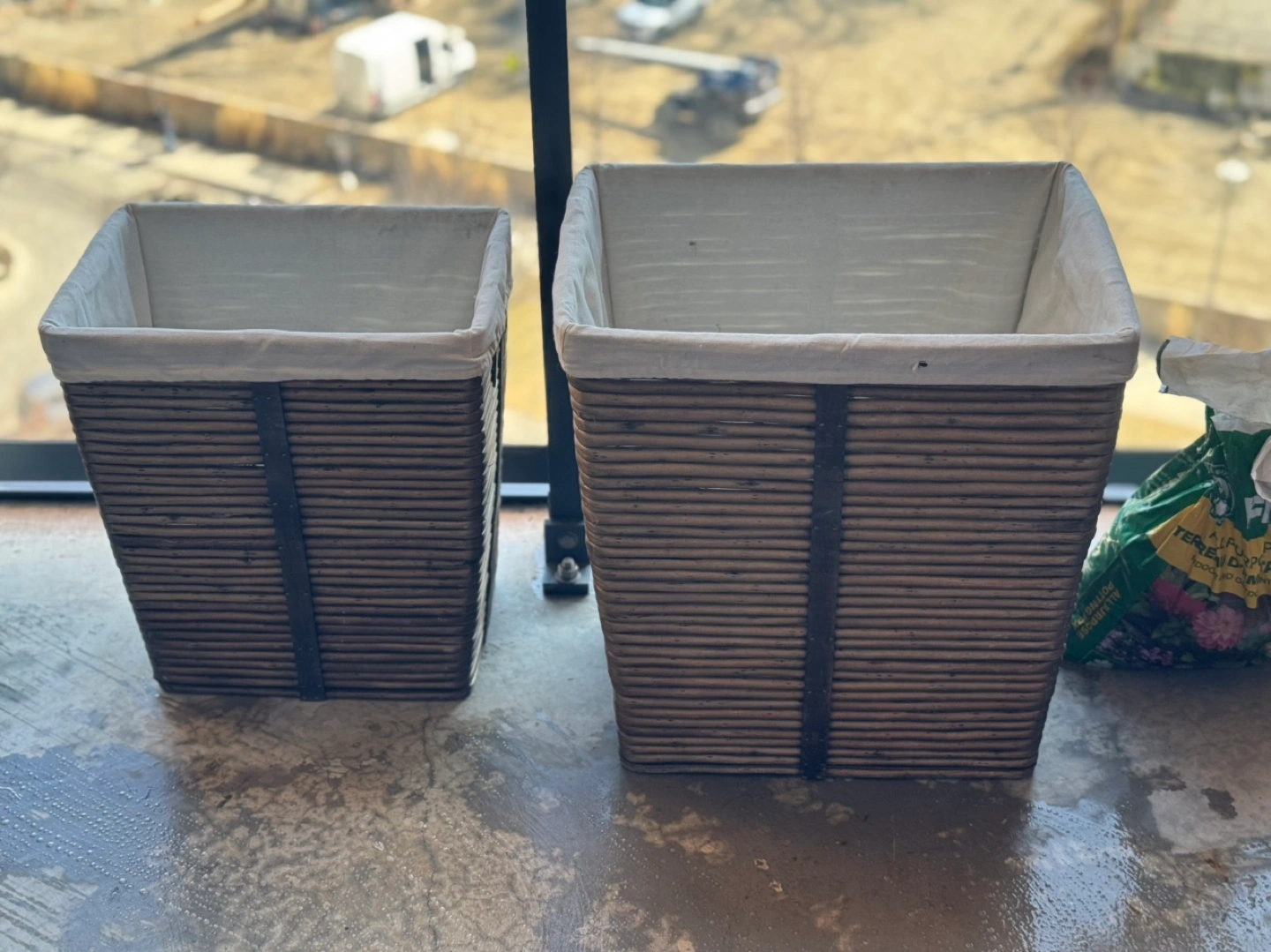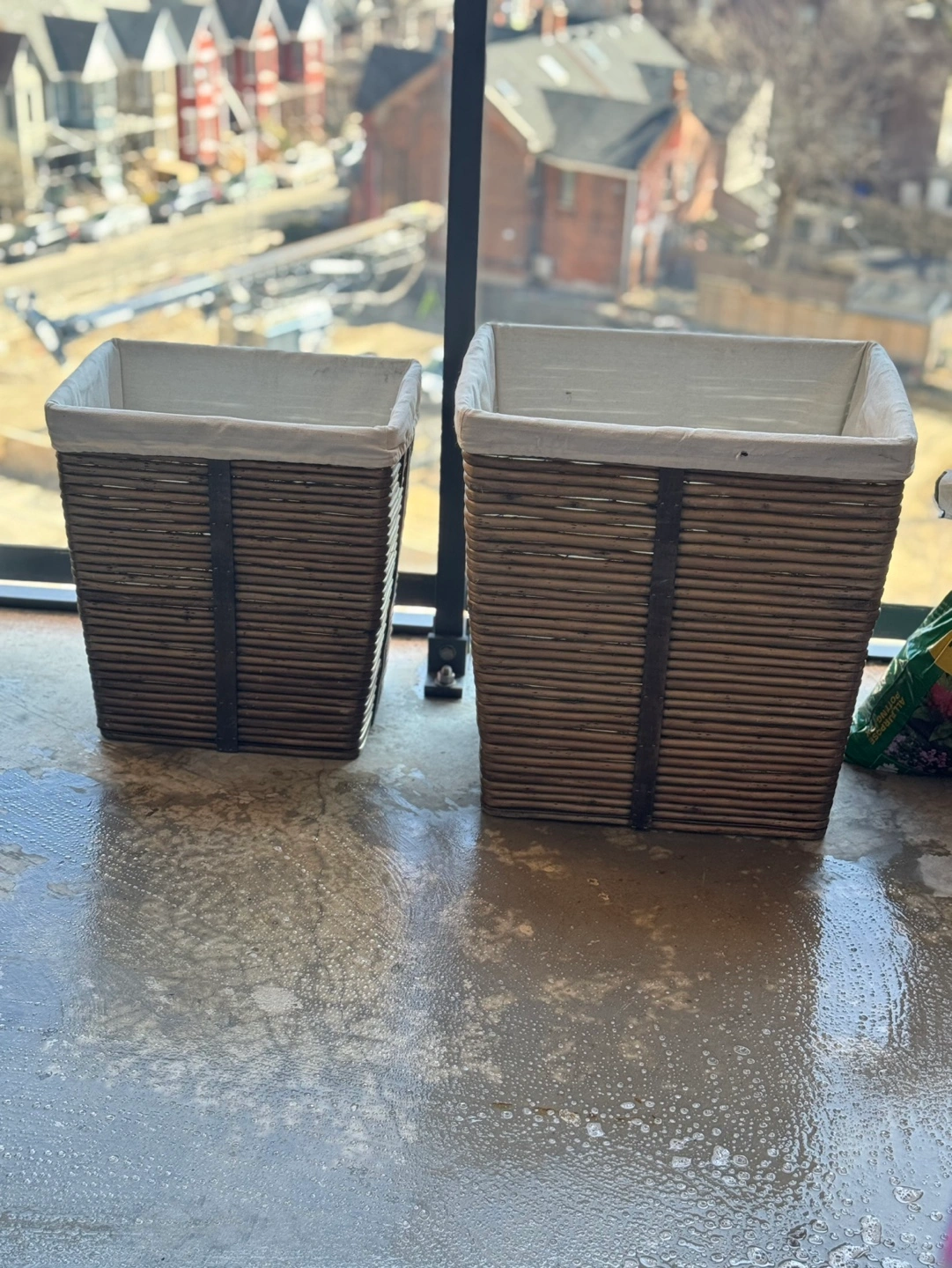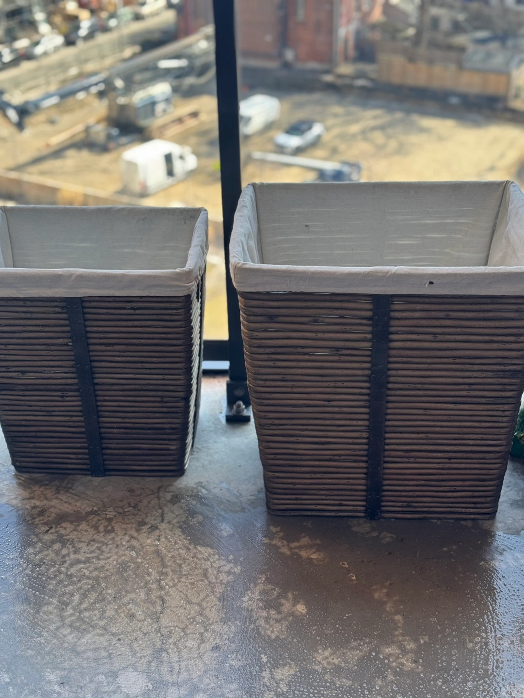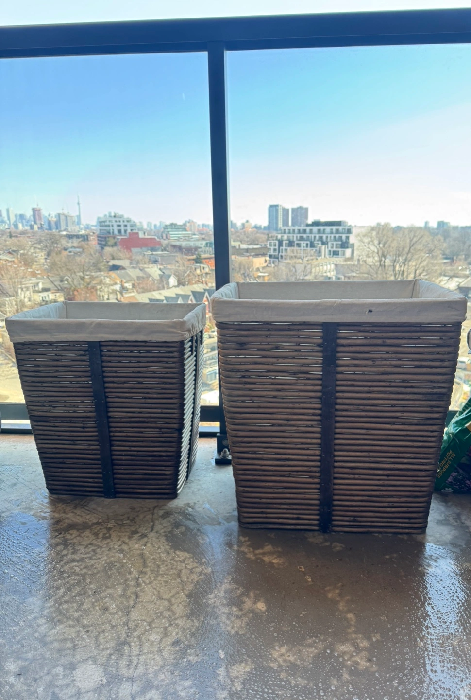 Cash only use it for plants, clothes or whatever you want because it is lined. Large: Depth: 36cm Height: 49cm Width: 47 cm Small: Depth: 28 cm Height: 43cm Width: 39.5cm CASH ONLY Pick up 60 Heintzman st Keele x dundas west