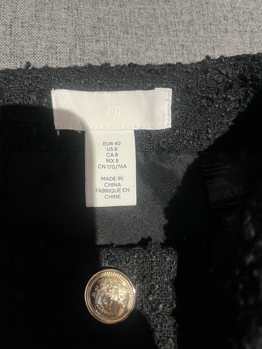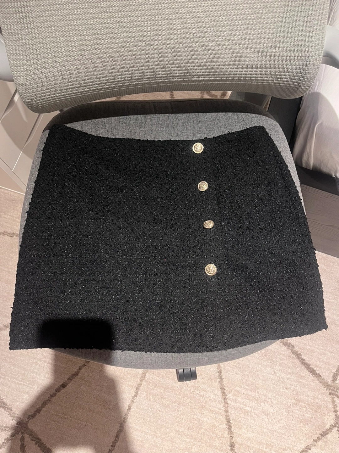 Black tweed mini skirt. Size 8. Features a button front closure. Brand new, washed once and never worn.