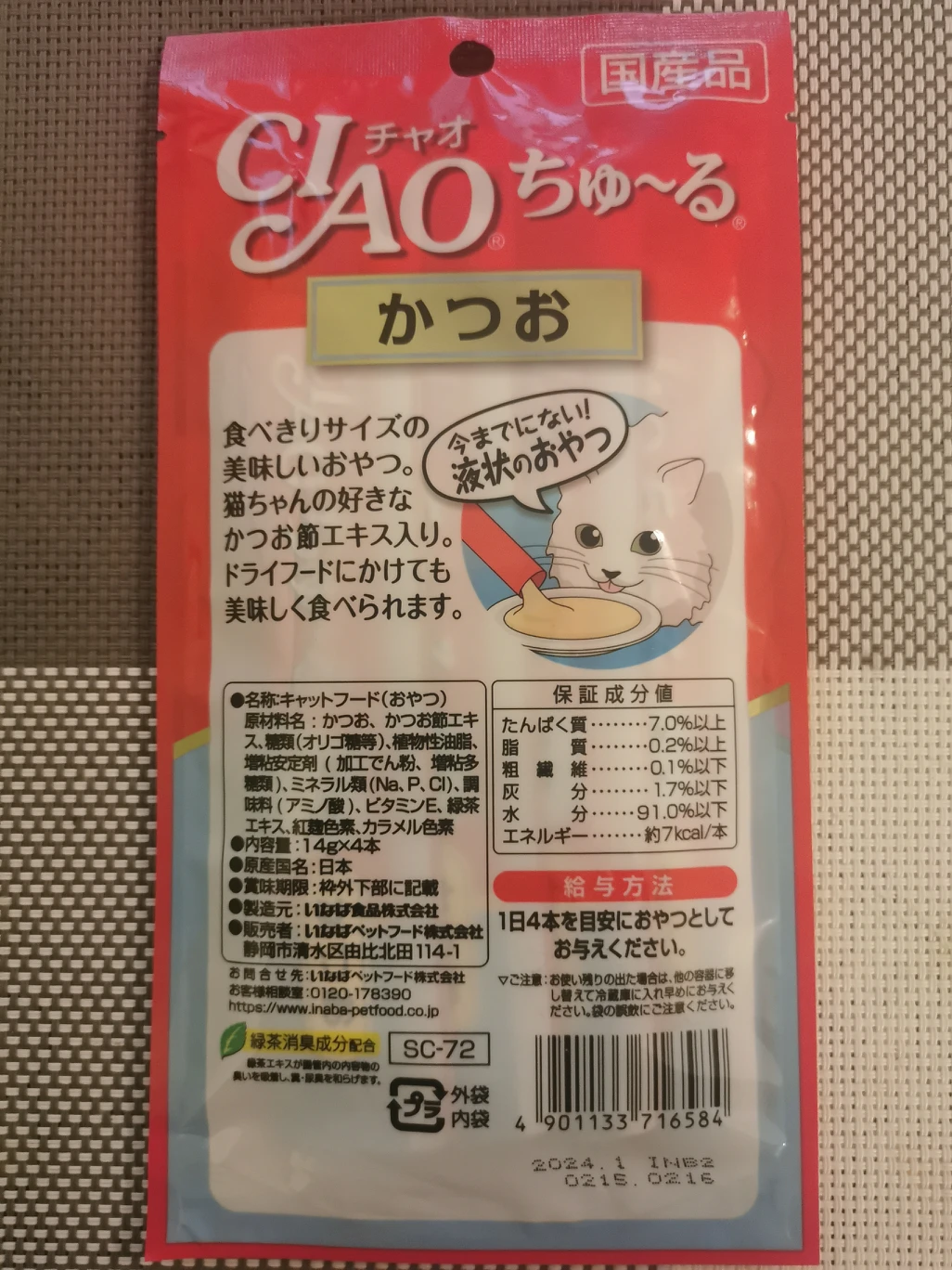 INABA Ciao Churu, Skipjack flavor. Made in Japan, unopened. Expiry date: January 2024 Pick up only. DM me for more details
