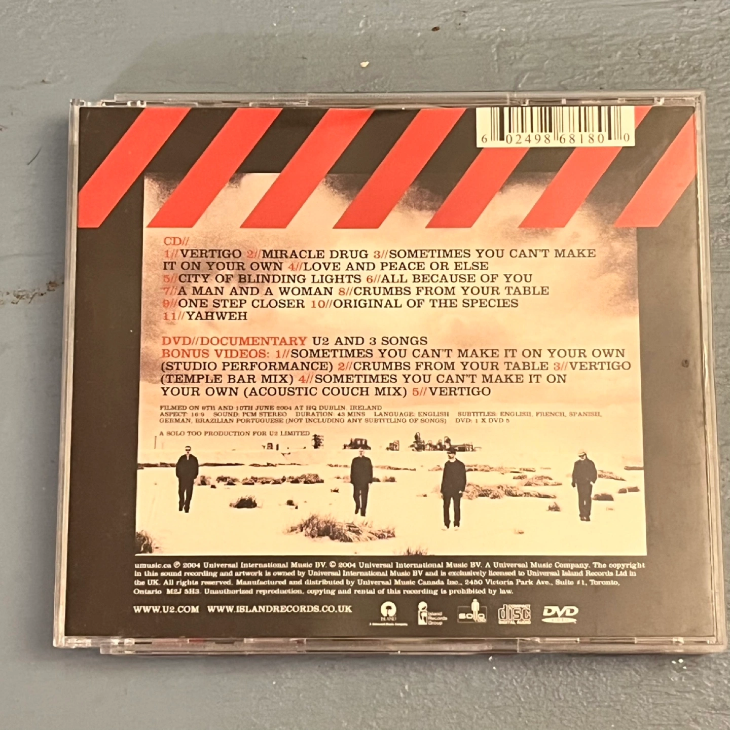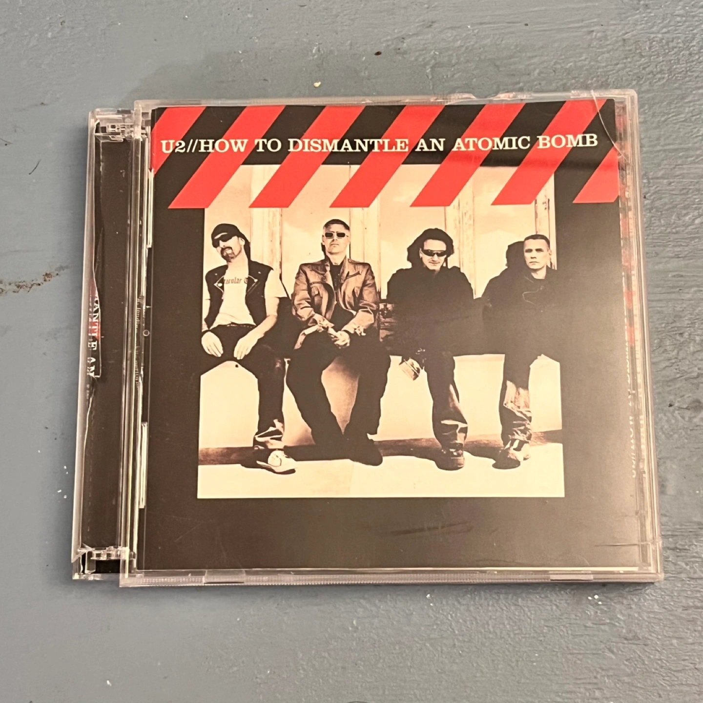U2 album, How to Dismantle an Atomic Bomb. Includes CD and DVD. The case is cracked and broken in some places but the case shuts tight and stays there.