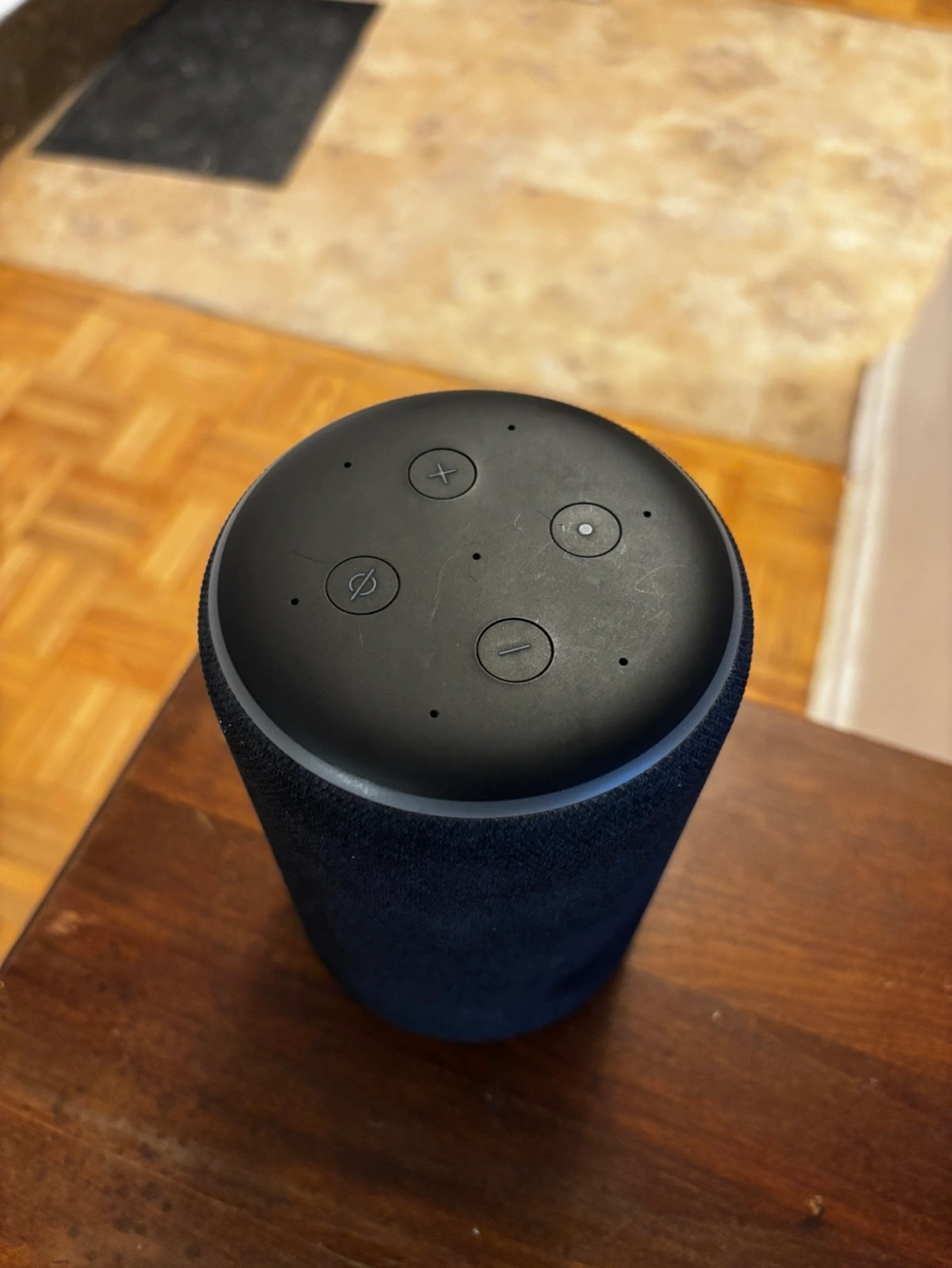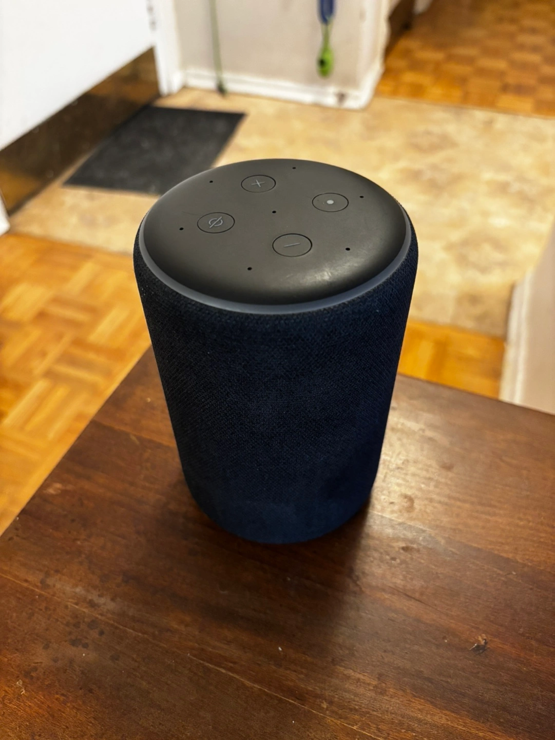 Smart speaker with Alexa. Good condition. Plays music, answers questions, makes calls, and more. Charcoal fabric cover, but the power cord is missing. Send your best offer !! Accepting EMT OR CASH ON DELIVERY