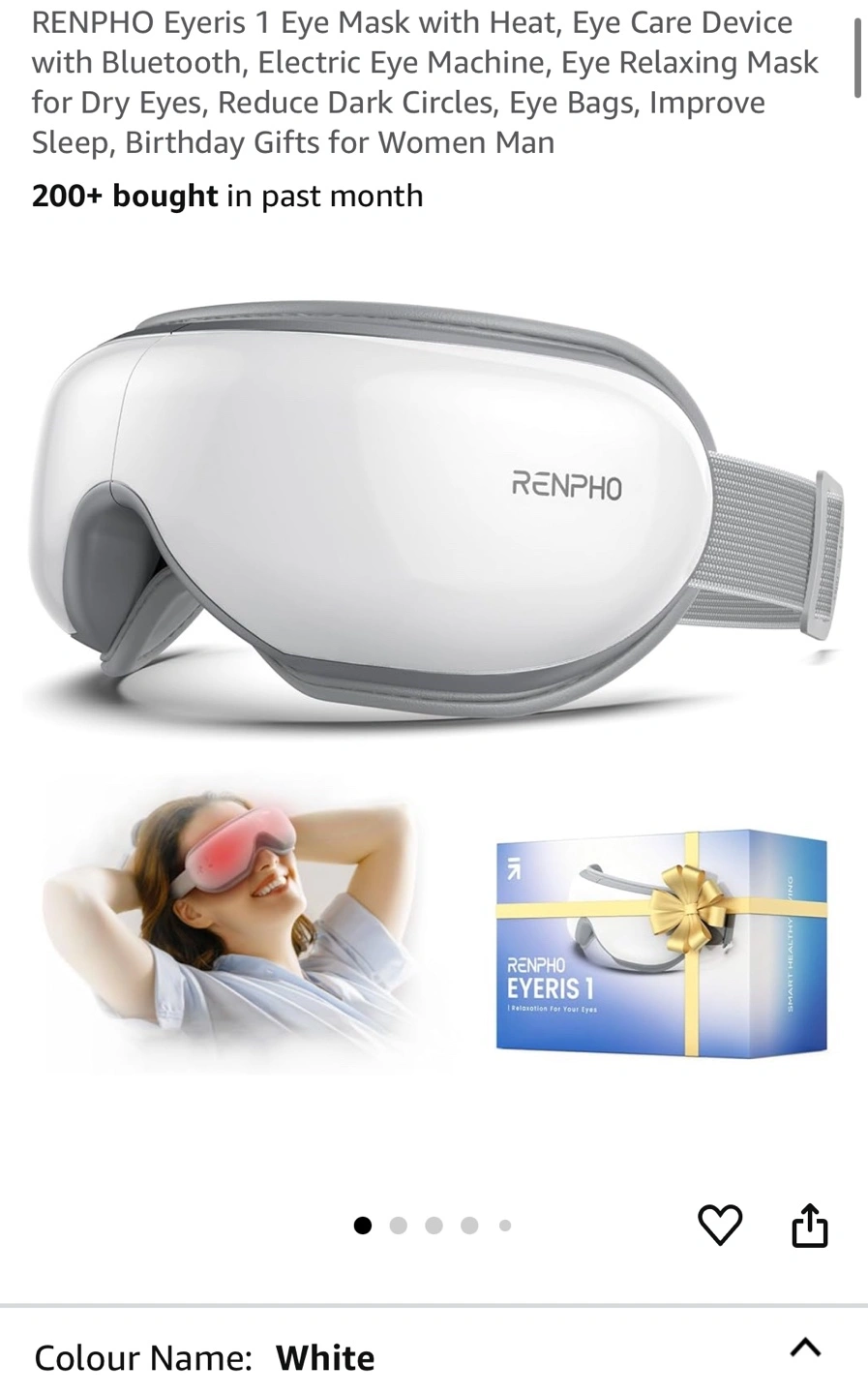 New, open box, RENPHO Eyeris 1 Eye Mask with Heat, & Bluetooth Electric Eye Machine, Eye Relaxing Mask for Dry Eyes, Reduce Dark Circles, Eye Bags, Improve Sleep, Birthday Gifts for Women Man Heat, Eye Care Device with Bluetooth, Electric Eye Machine, Eye Relaxing Mask for Dry Eyes, Reduce Dark Circles, Eye Bags, Improve Sleep, Birthday Gifts for Women Man Retails for $55.99 on sale on Amazon Asking $35 Pickup near danforth and coxwell