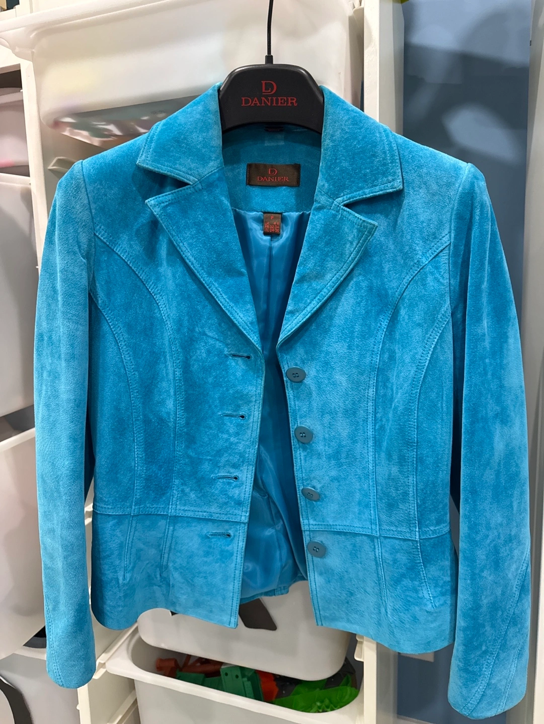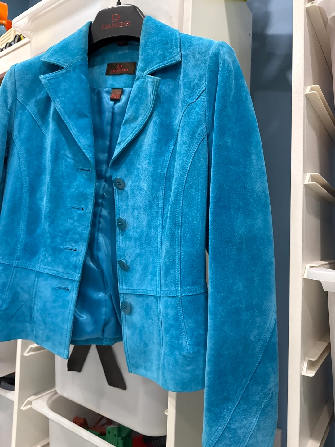 Beautiful teal suede jacket. Button closure. Excellent condition. Size 4-6.