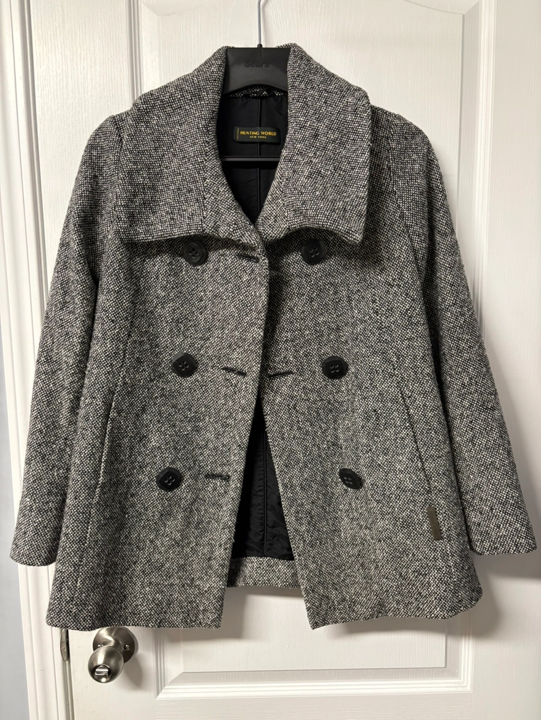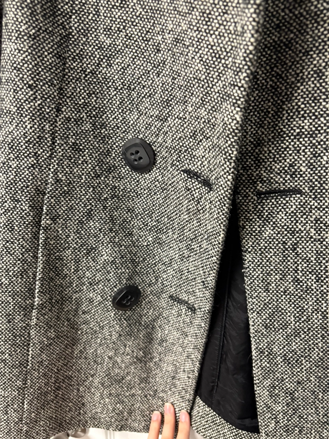 Women's double-breasted peacoat. Black and white tweed. Size 40. Made in Italy.