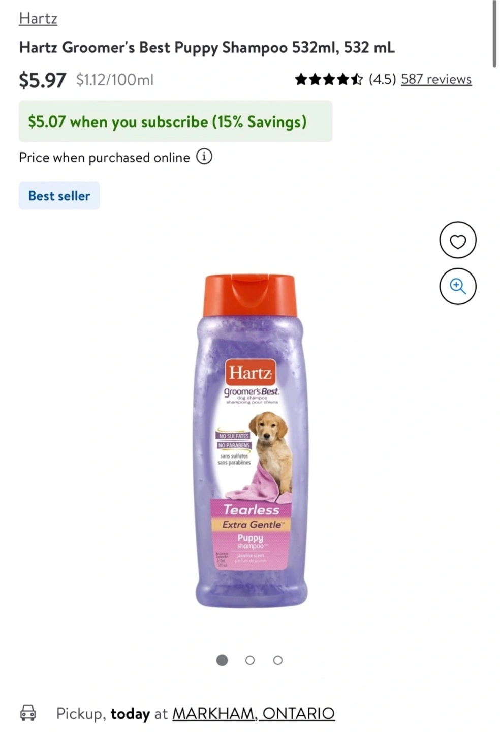 Take all for $15 or pricing below Sugar cookie $10: Used a few times, 80% full. Smells really nice and subtle. Bought from TJ Maxx for $15 plus tax. Tearless puppy $3: Used a few times, smells really nice. The sticker on the back is a little wrinkly as it had been sitting in my shower but nothing wrong with it. London fog $5: Used twice, still has a lot left. Great for dogs with itchy skin as oatmeal helps. Bought for around $9. Take a look at my other items if interested. Can bundle with my other stuff for cheaper! Can meetup in Markham. Cash only please