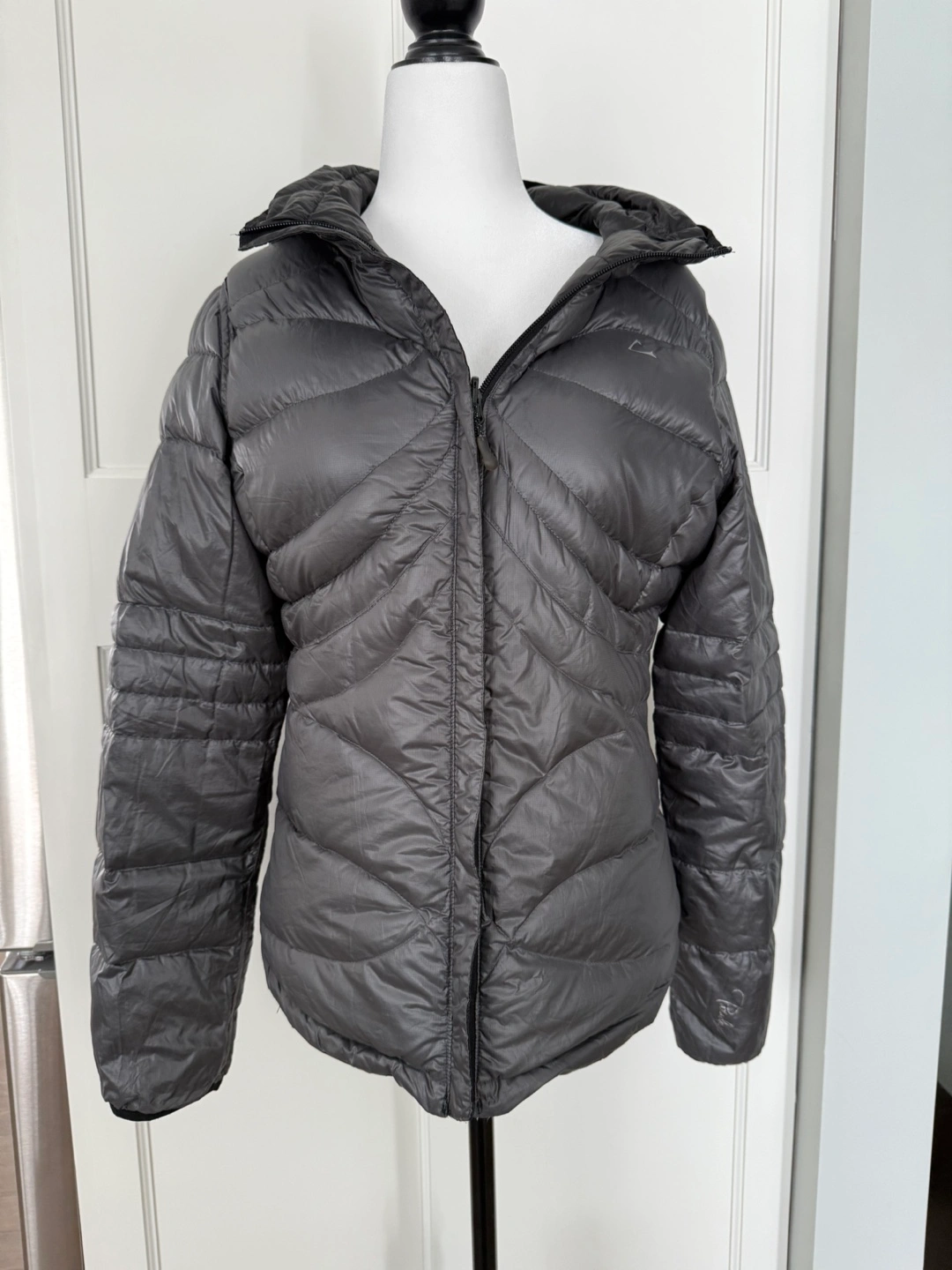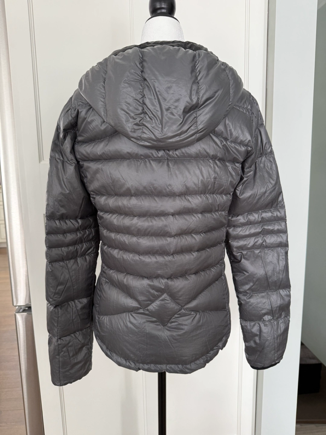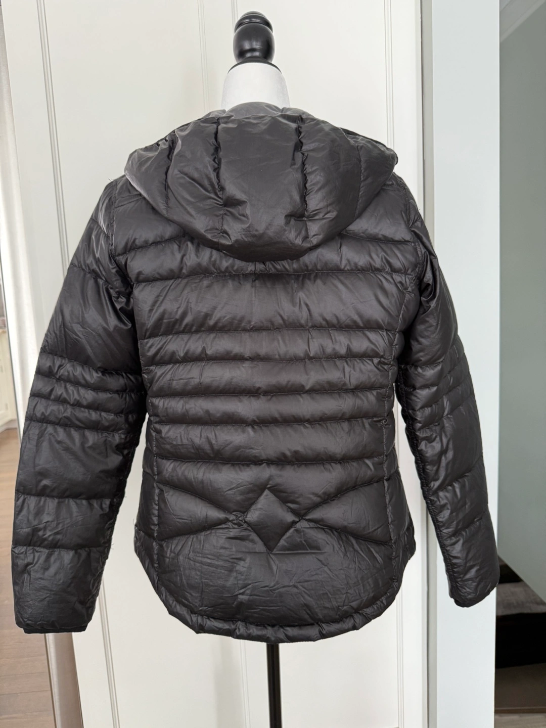 ‼️ c l o s e t c l e a n o u t ‼️ ➡️ item is available ➡️ check out my other listings 🚫 smoke-free home / no pet hair 📍 pick up near Greenbank / Hunt Club Size SMALL Lightweight hooded puffer jacket Reversible (black/grey) Zipper closure Packable design Excellent for layering and travel! Sad to see this go but it no longer fits. Time for someone else to enjoy! 🤍 Thank you for your interest! Merci de votre intérêt !