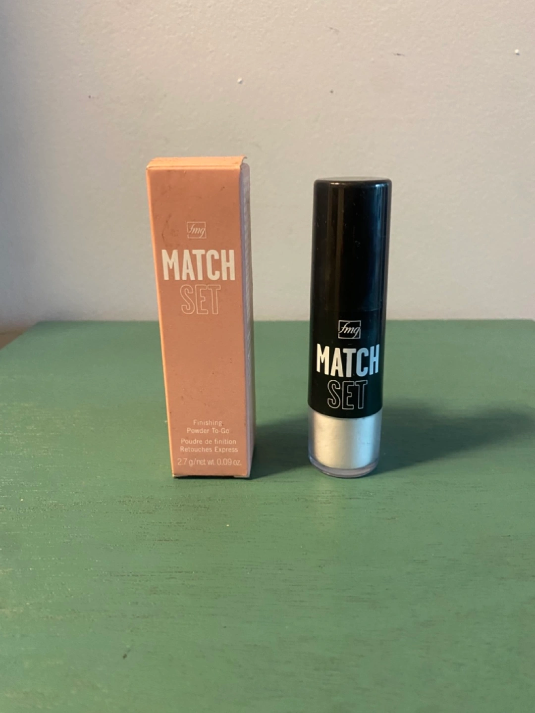 Portable finishing powder. Includes brush and container. Lightweight packaging. Great for touch-ups.
