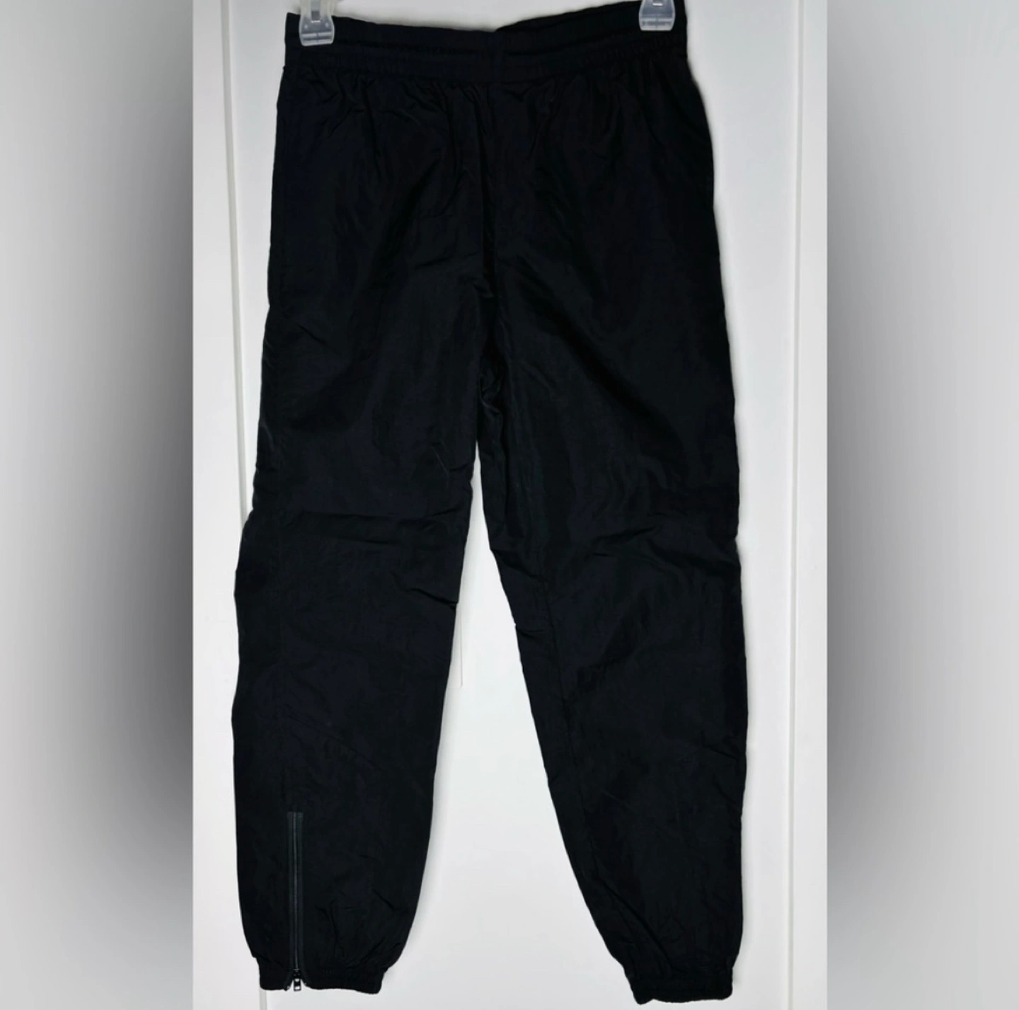 Comfortable and stylish black track pants perfect for any casual outing. Designed for a relaxed fit and easy movement. •Good Pre-loved Condition •Zipper Closures at Hem •Stretchy Waistband •Drawstring Waist •Has Pockets MEASUREMENTS: Waist:14”-17” Length:37” Inseam:28” Rise: