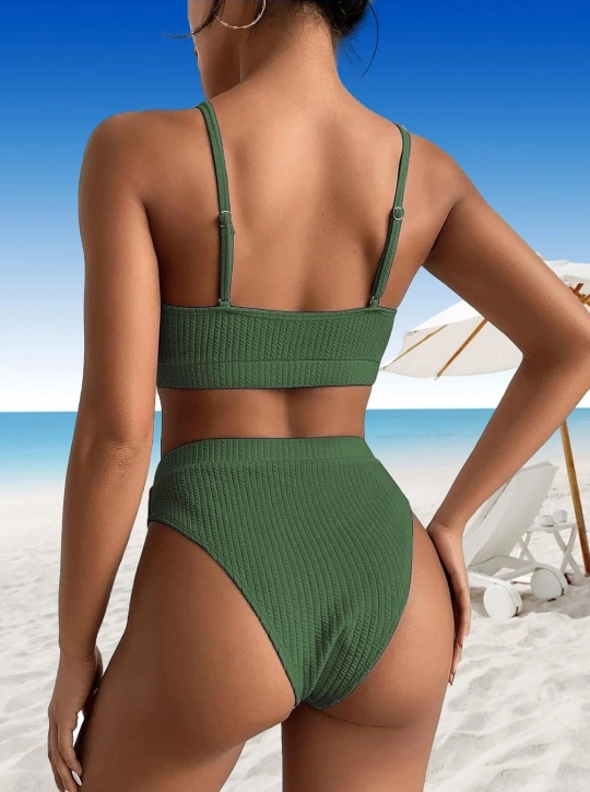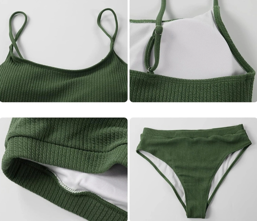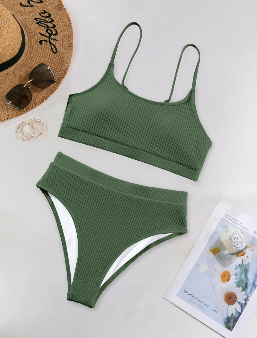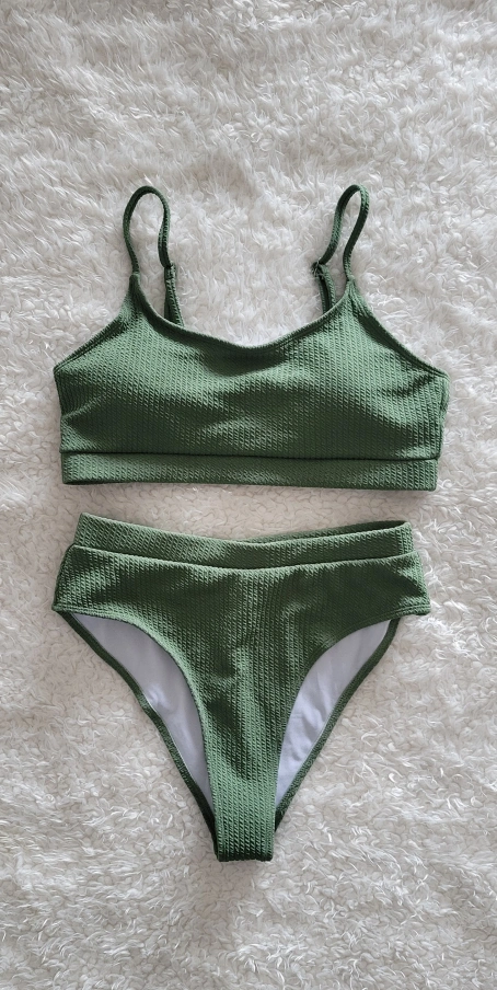 Brand New. Gorgeous olive green bikini. High-waisted bottoms and a square-neck top. Textured fabric. Perfect for summer. Sells for $37.98 +tax on Amazon. Own it for a much lesser price! Bundle to save. ๐๐ป๐ธ Cash and pickup only on Brimley and Eglinton Rd E. in Scarborough.