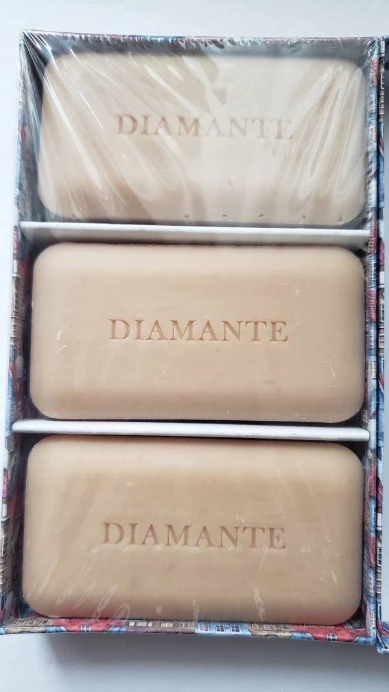 Three bars of Diamante Luxury Soap in Vanilla & Ginger scent. Made in Italy. New, unopened box.