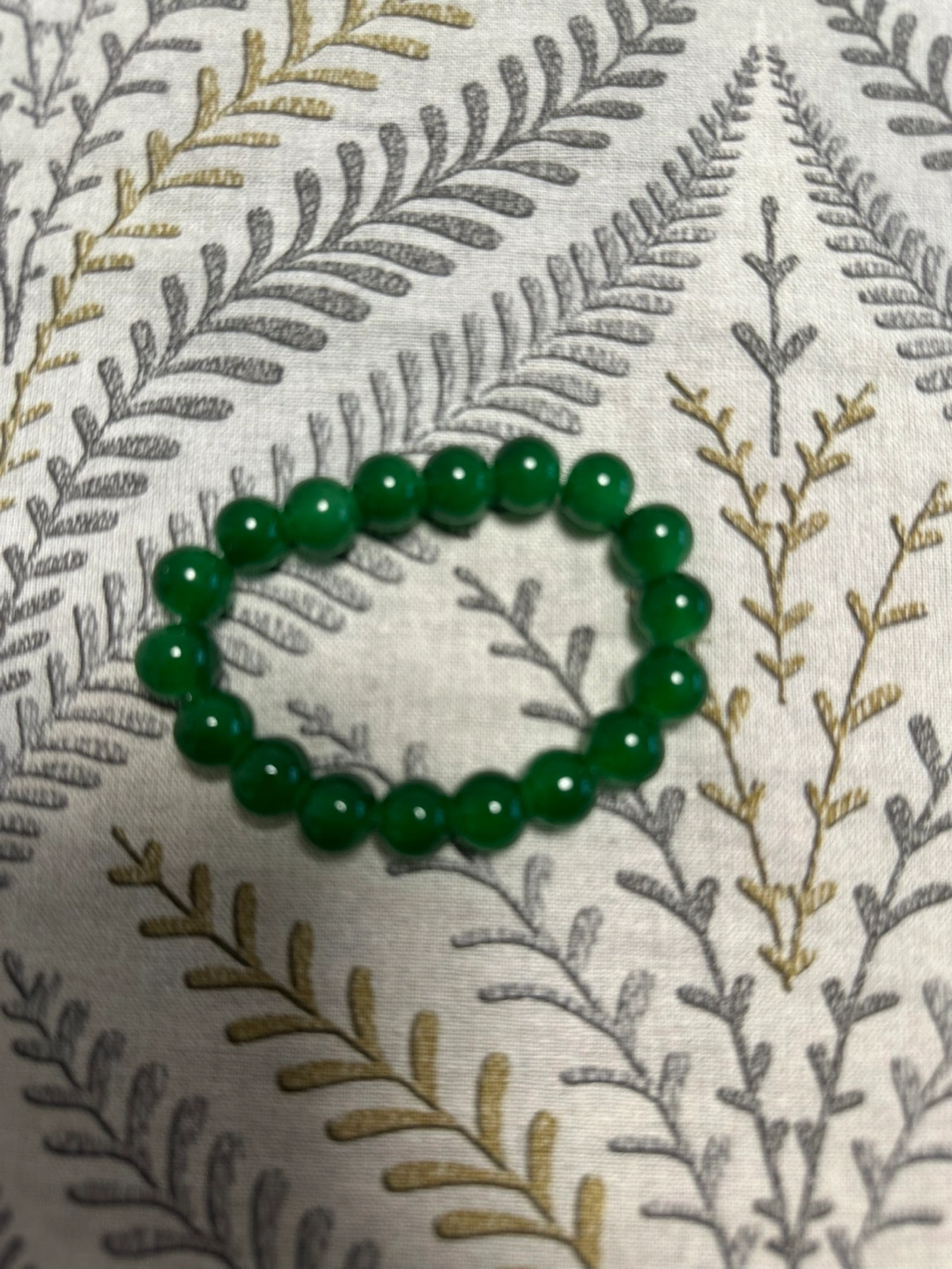 Stretchy bracelet. Features round, green jade beads. Elegant and simple design. Perfect for everyday wear.