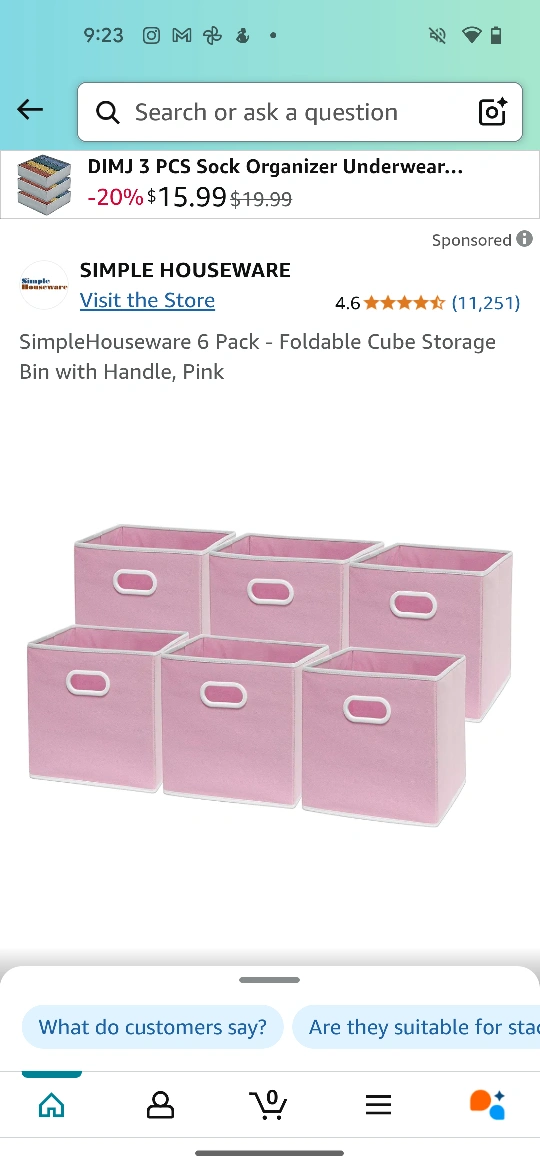 Six pink foldable fabric storage cubes. Each cube features a handle. Ideal for organizing various items. Brand New, great for organizing your princess room