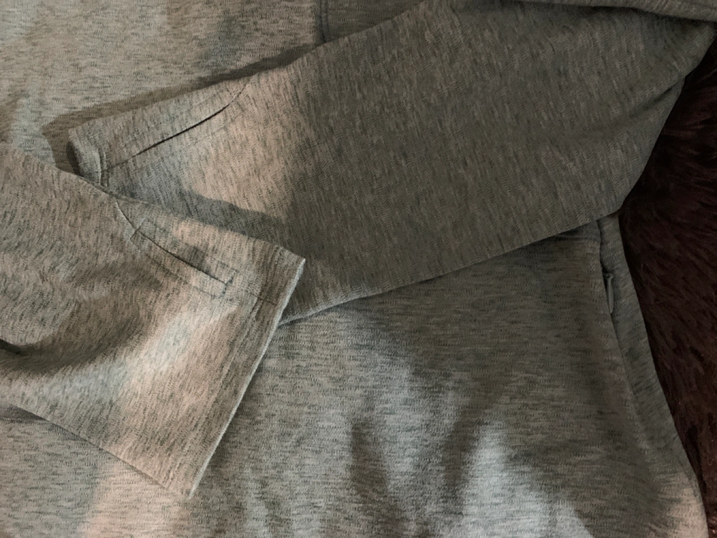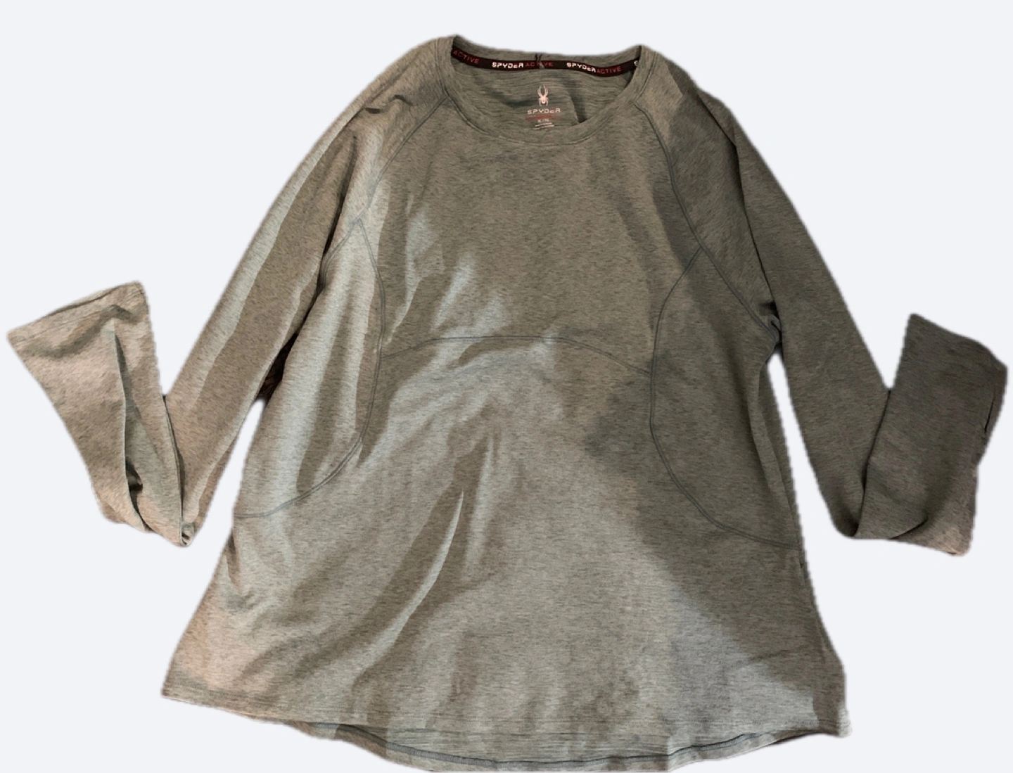 Long sleeve shirt. Teal green heather colour. Size XL. Soft material. Great for layering or wearing alone. Zippered left pocket Thumbholes