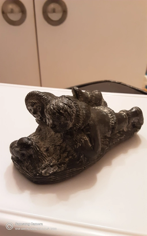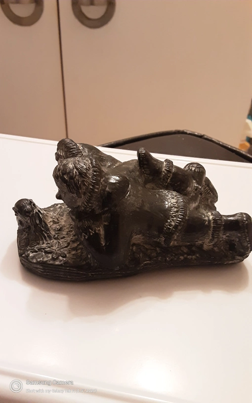 HAND- CARVED CHILDREN AND RABBIT, SOAPSTONE ,COLLECTIBLE ITEM.