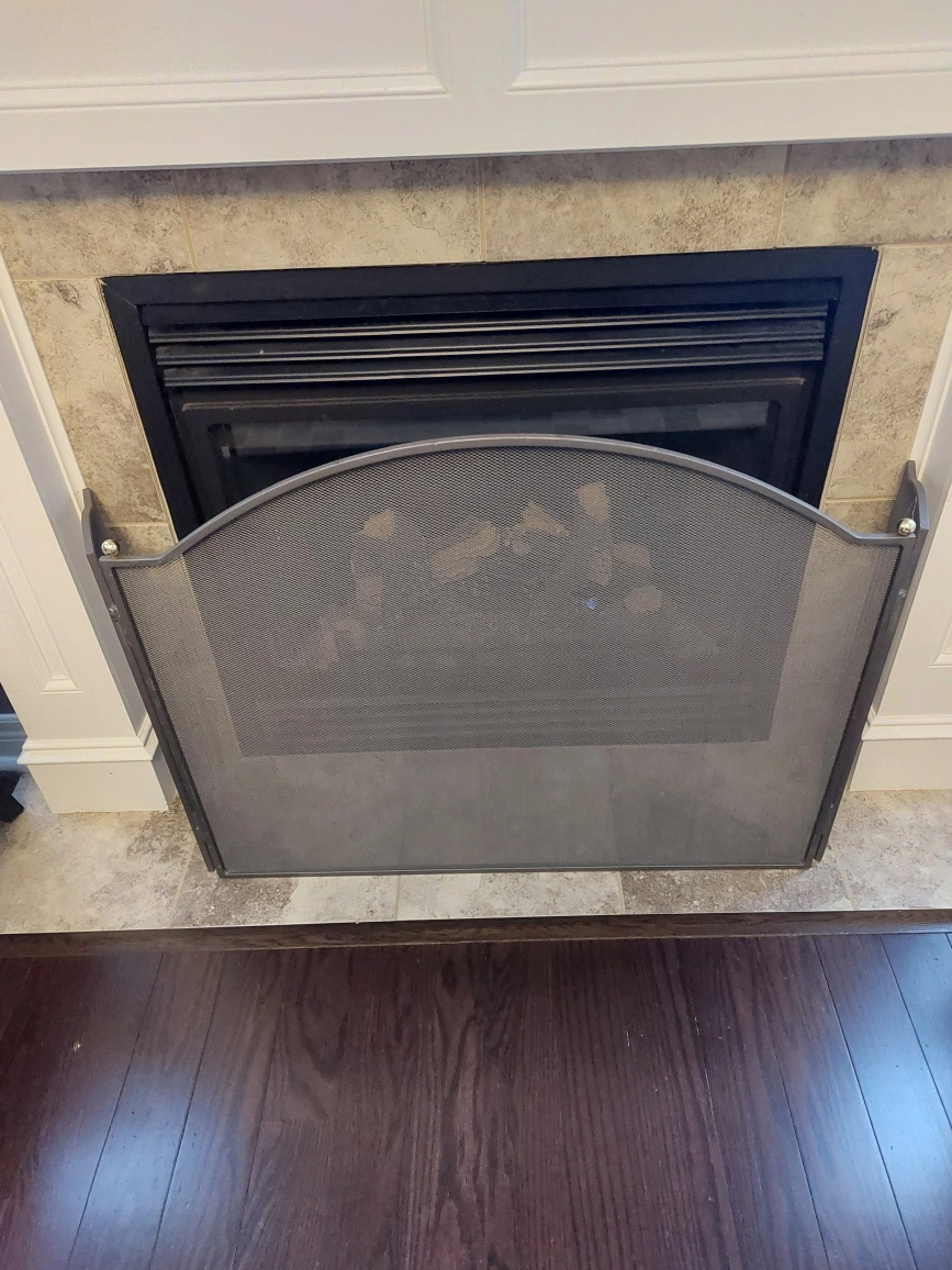 Three-panel Fireplace Screen Dark grey metal fireplace screen. Three panels. Arched top. In very Good to excellent condition.