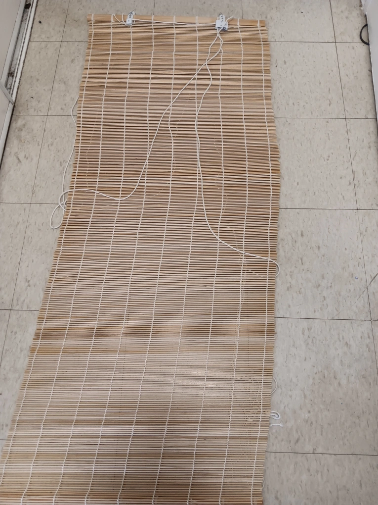 Light coloured bamboo roller shade. Includes hardware for hanging. Good condition. Pick up only