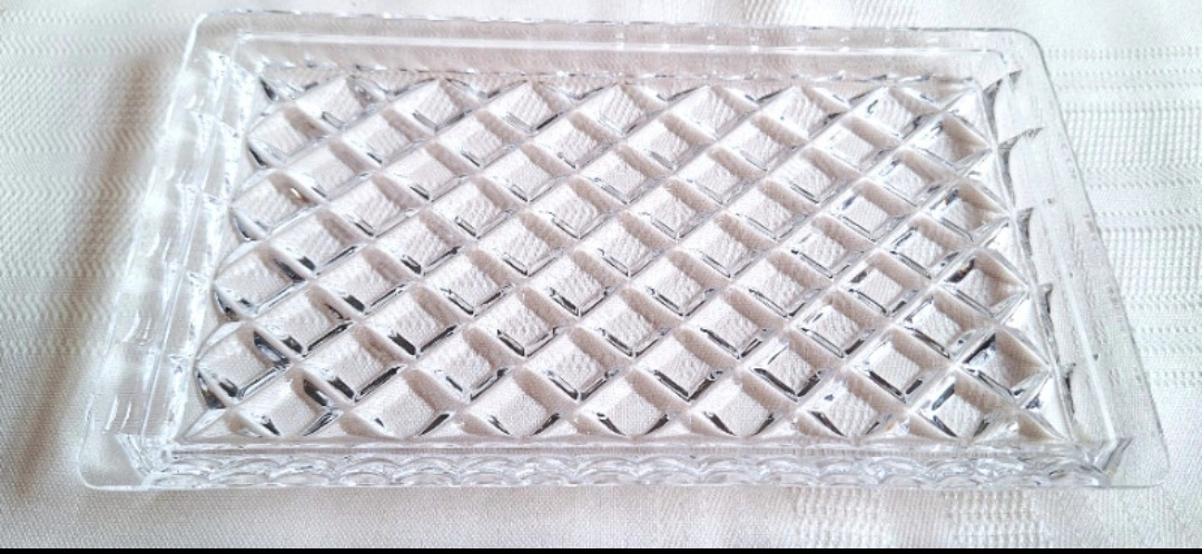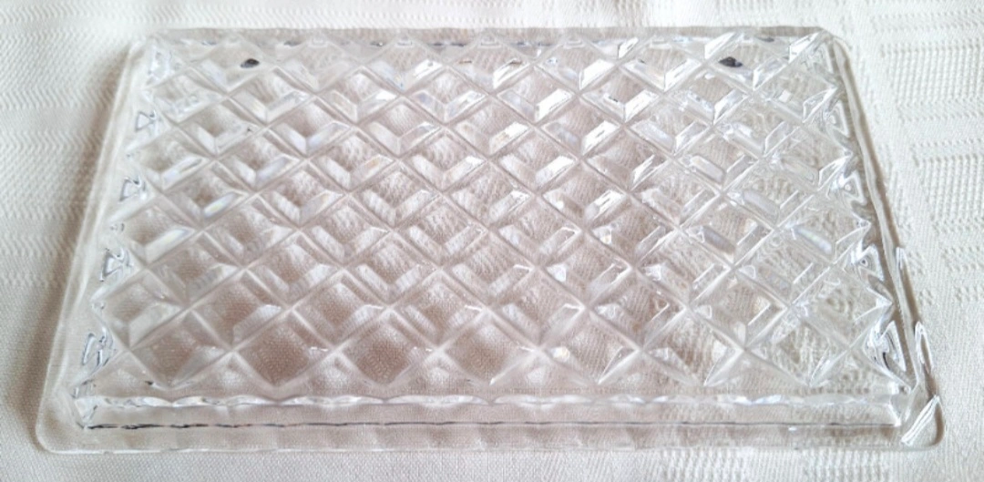 Vintage Cut Glass Creamer and Sugar Tray 7.5 " x 4.25" No chips or cracks Diamond shape