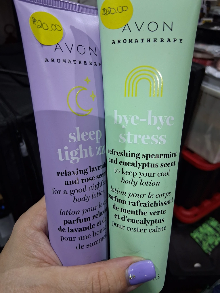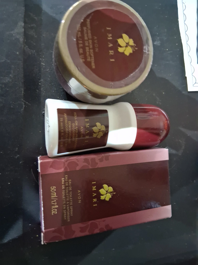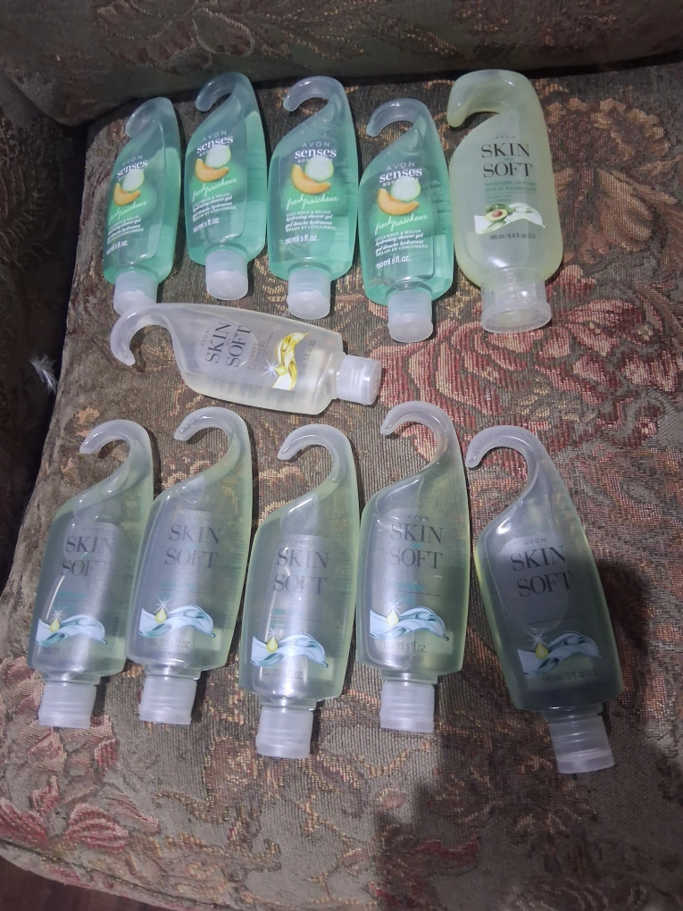 Avon Imari perfume gift set includes body lotion and roll-on deodorant $20.00, Ten Avon Skin Soft and natural shower gels $4.00 each. Avon Pro Nail Polish Remover Pads $2.00,, acetone-free. Match Set Finishing Powder $3.00 Four mystery bags of Avon items $5 each