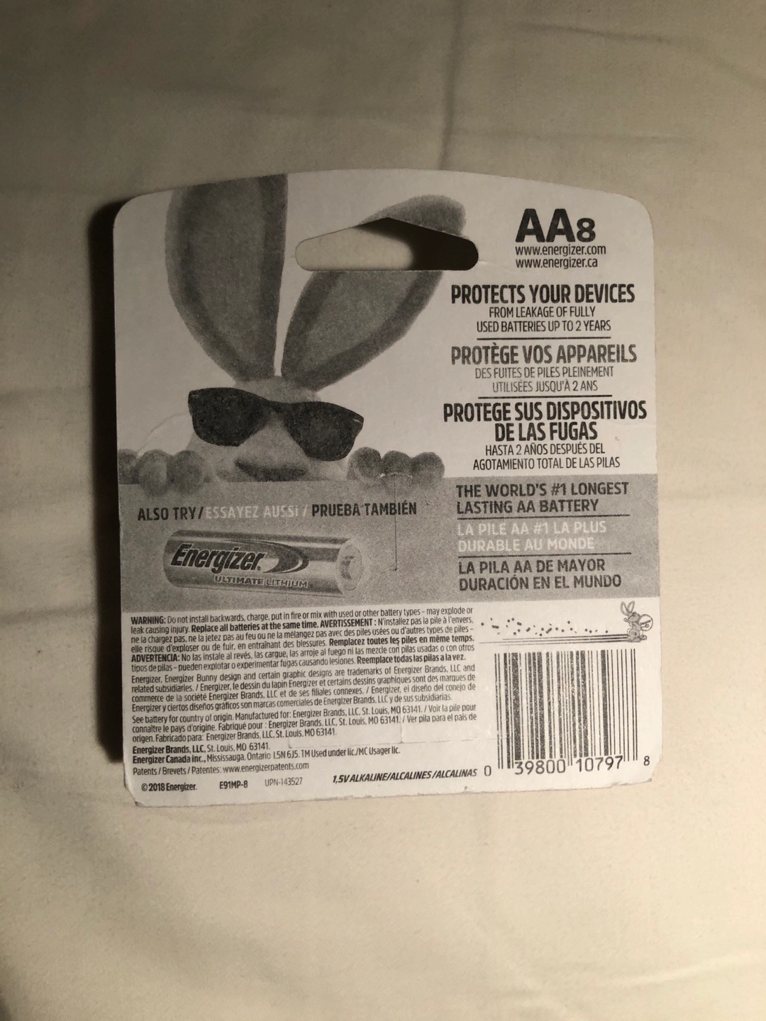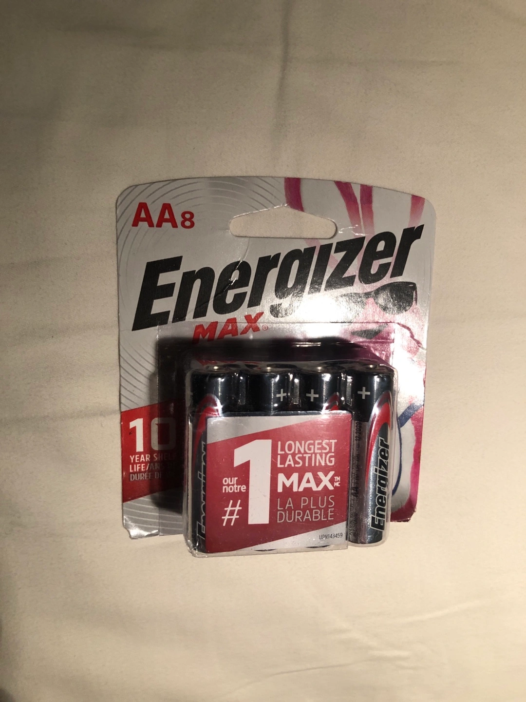 Eight Energizer MAX AA batteries. New in package. Good ‘til Dec 2029