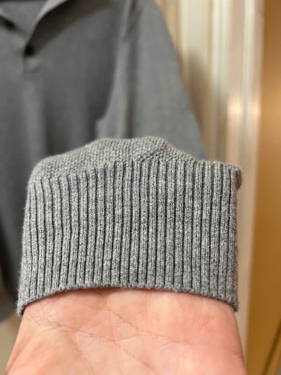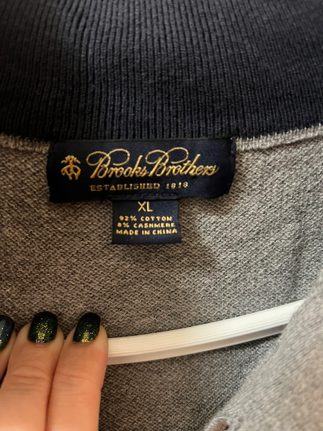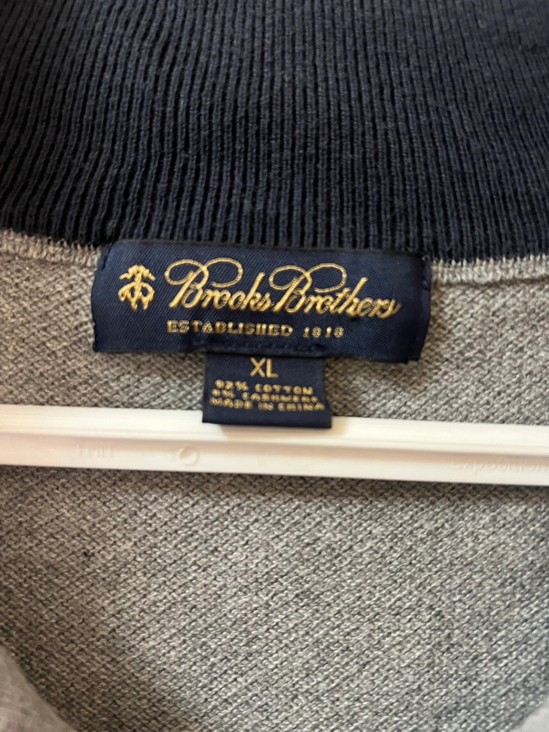 Men's grey long-sleeve sweater. Size XL. Features a mock neck and button placket. Made of a soft knit material including 8% cashmere. Excellent condition. Ptp- 23 Length- 25.5 Arm- 27