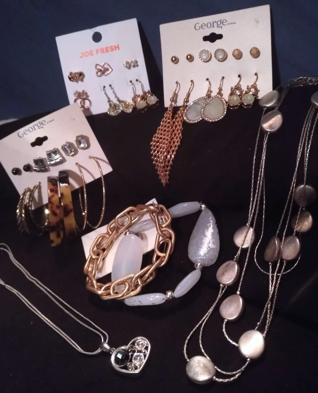 Large lot of women's jewelry(NEW). Includes multiple pairs of earrings, a necklace, and a bracelet. Take it ALL For only $15