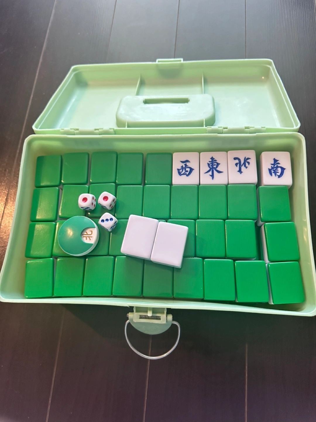 Complete mahjong set Green tiles, includes carrying case, dice Only played several times