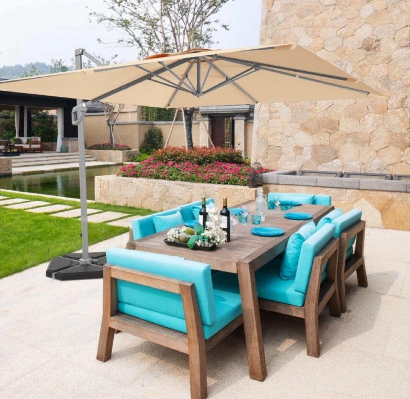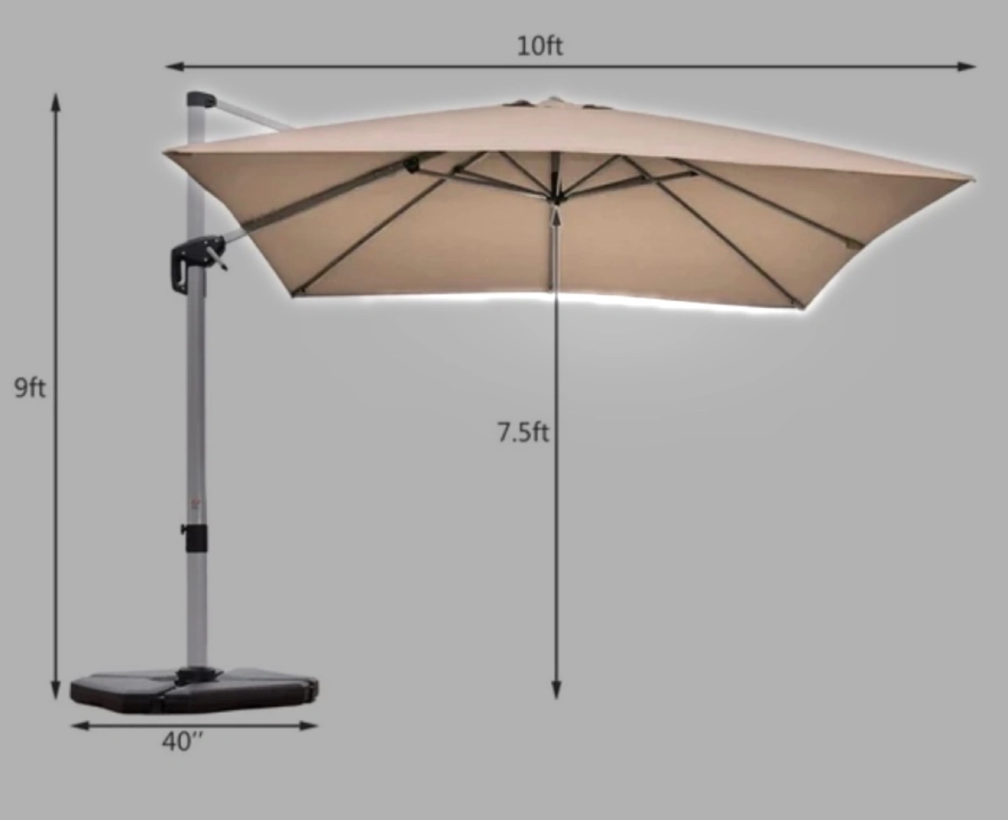 💥 New Heavy duty commercial grade Sun Umbrella Cantilever patio umbrella replacement. Beige fabric. Base weight sold separately only top half available Can be mounted on a strong fence or wall if you are handy. 🚚Can deliver locally at full asking price Cash only pls. Bundle other items for better price. Can be mounted to a heavy duty fence.