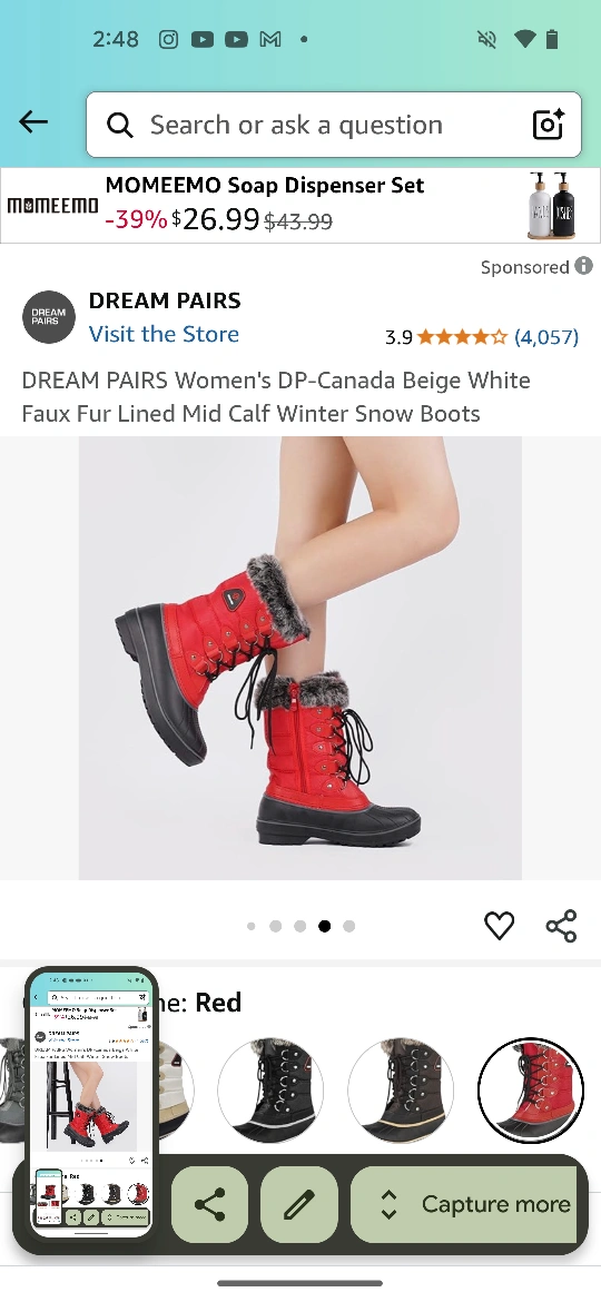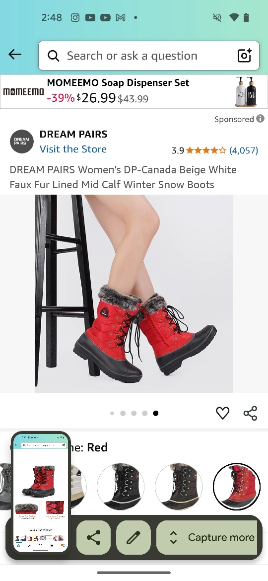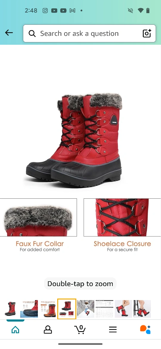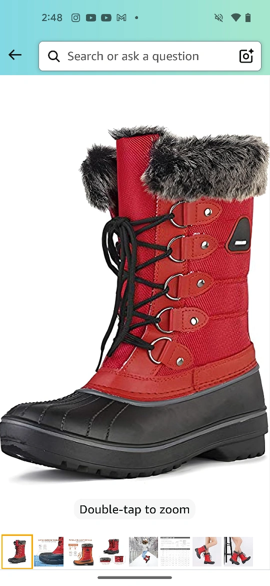 Warm winter boots. Red with black sole. Faux fur lining. Lace-up closure. Mid-calf height. brand new.