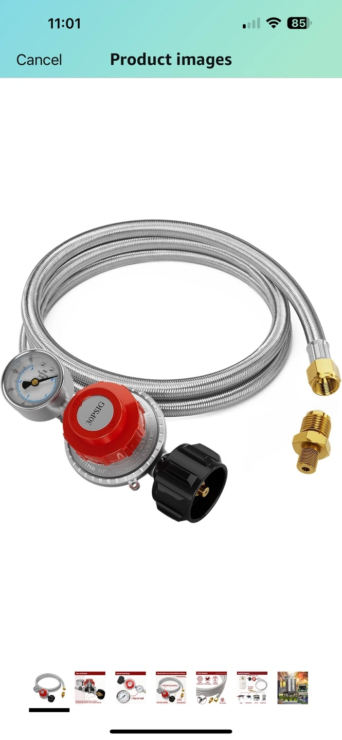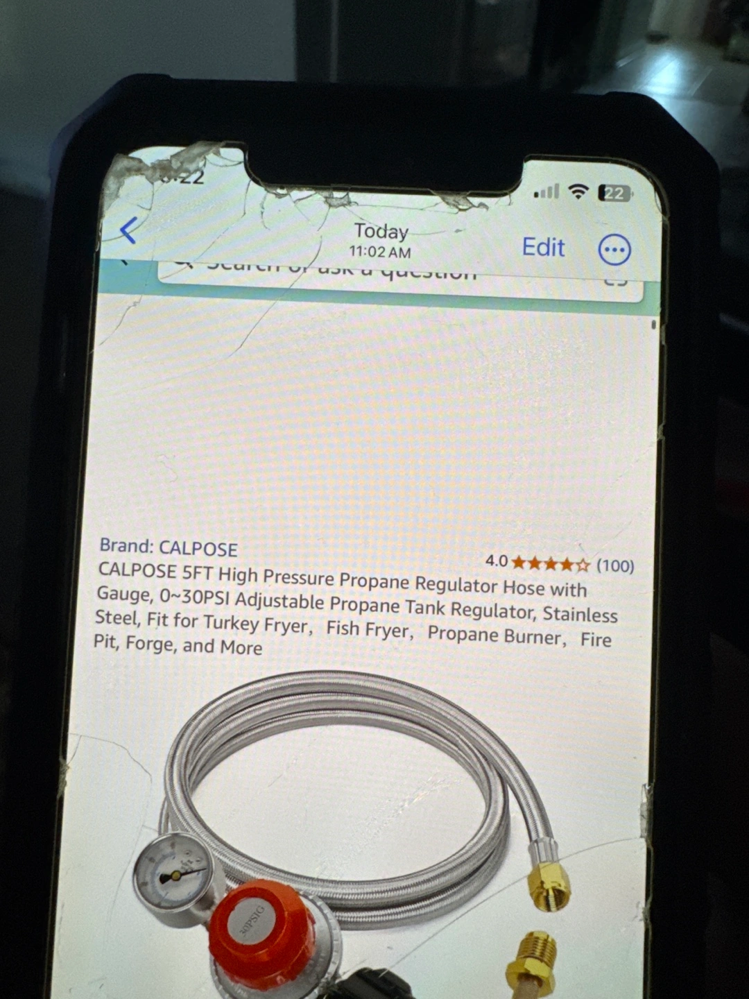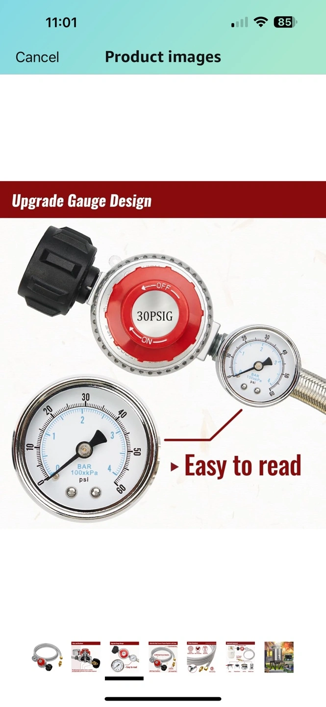 0-30PSI adjustable propane tank regulator. Stainless steel. Suitable for turkey fryer, fish fryer, propane burner, fire pit, and more.
