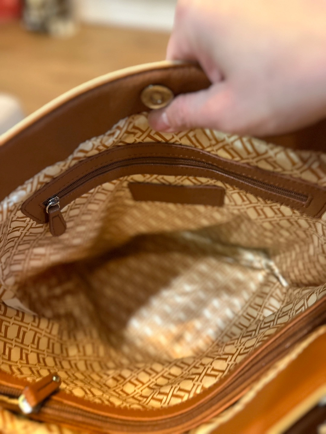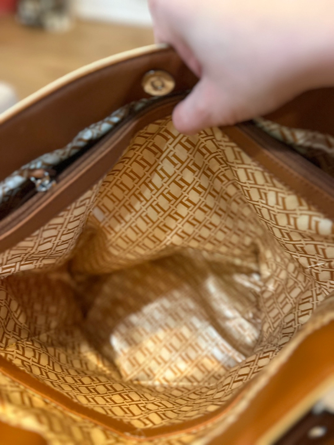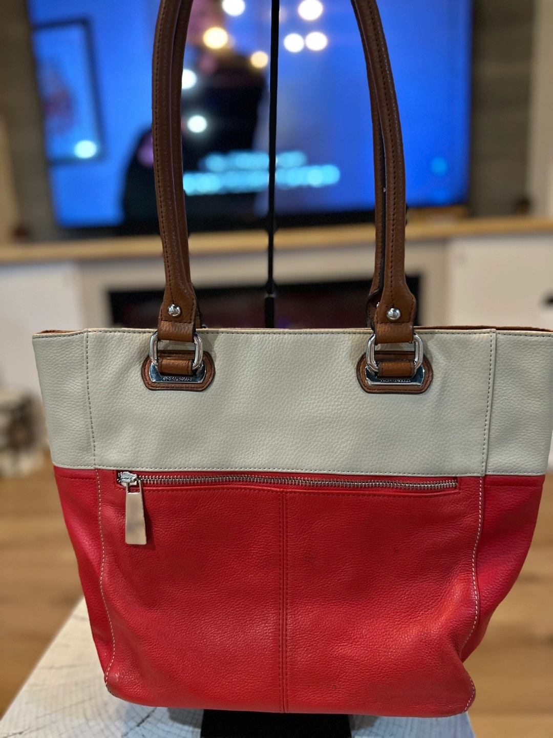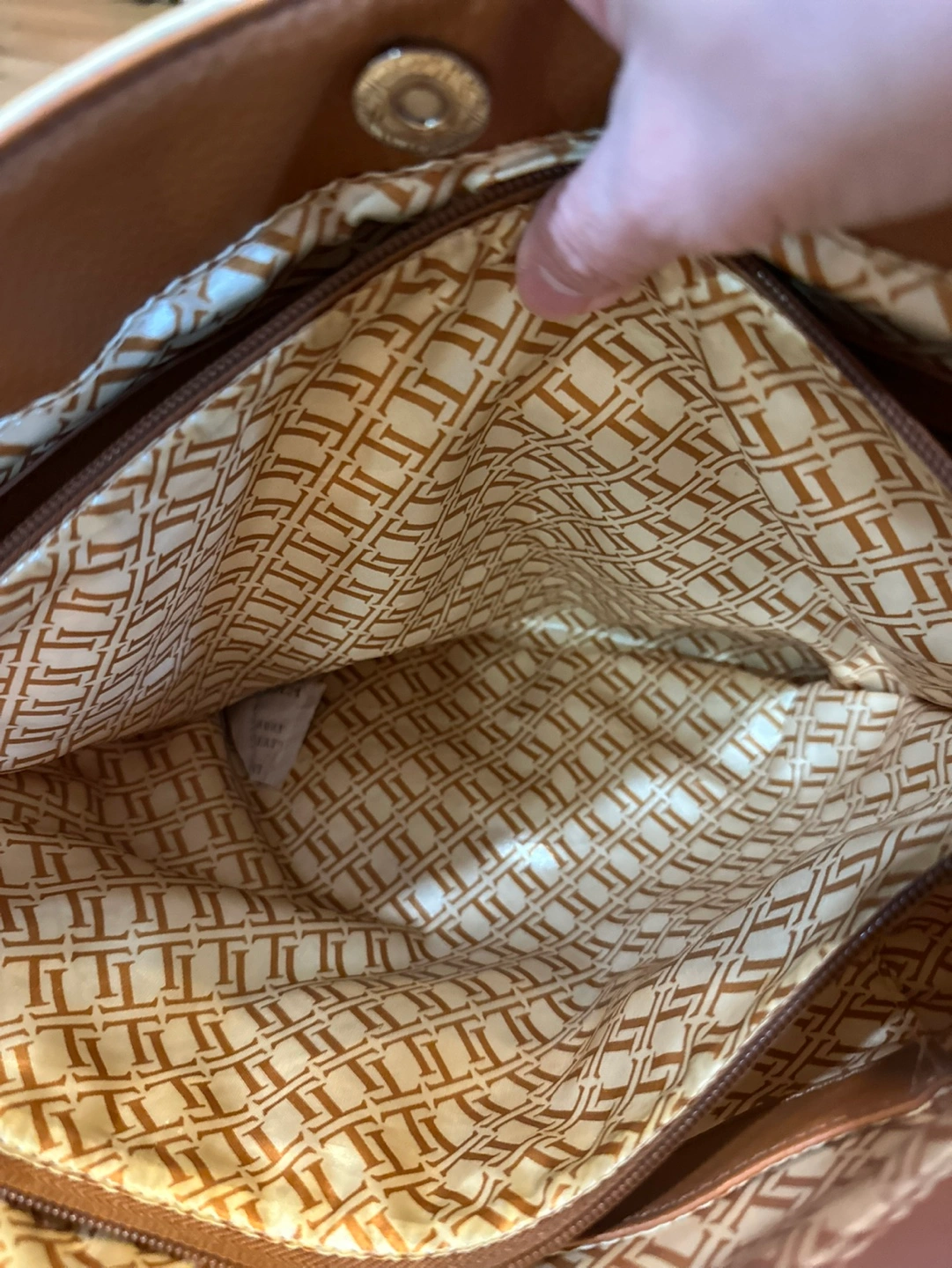Tignanello Brand Hobo Bag Great condition Clean inside $80 Pickup in Milton Stylish two-toned leather tote bag. Features a zip closure and interior pockets. Brown leather handles. Great for everyday use.