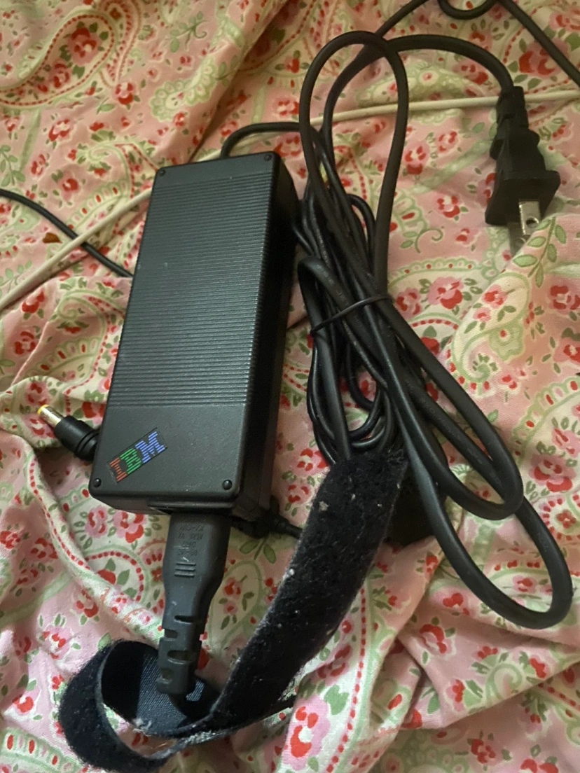 Lenovo laptop power adapter. Black rectangular power brick. Long cord with North American plug. Used condition.