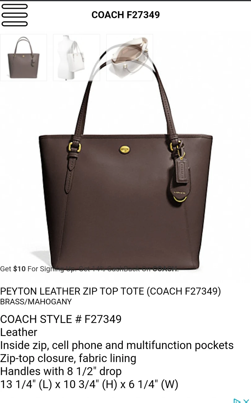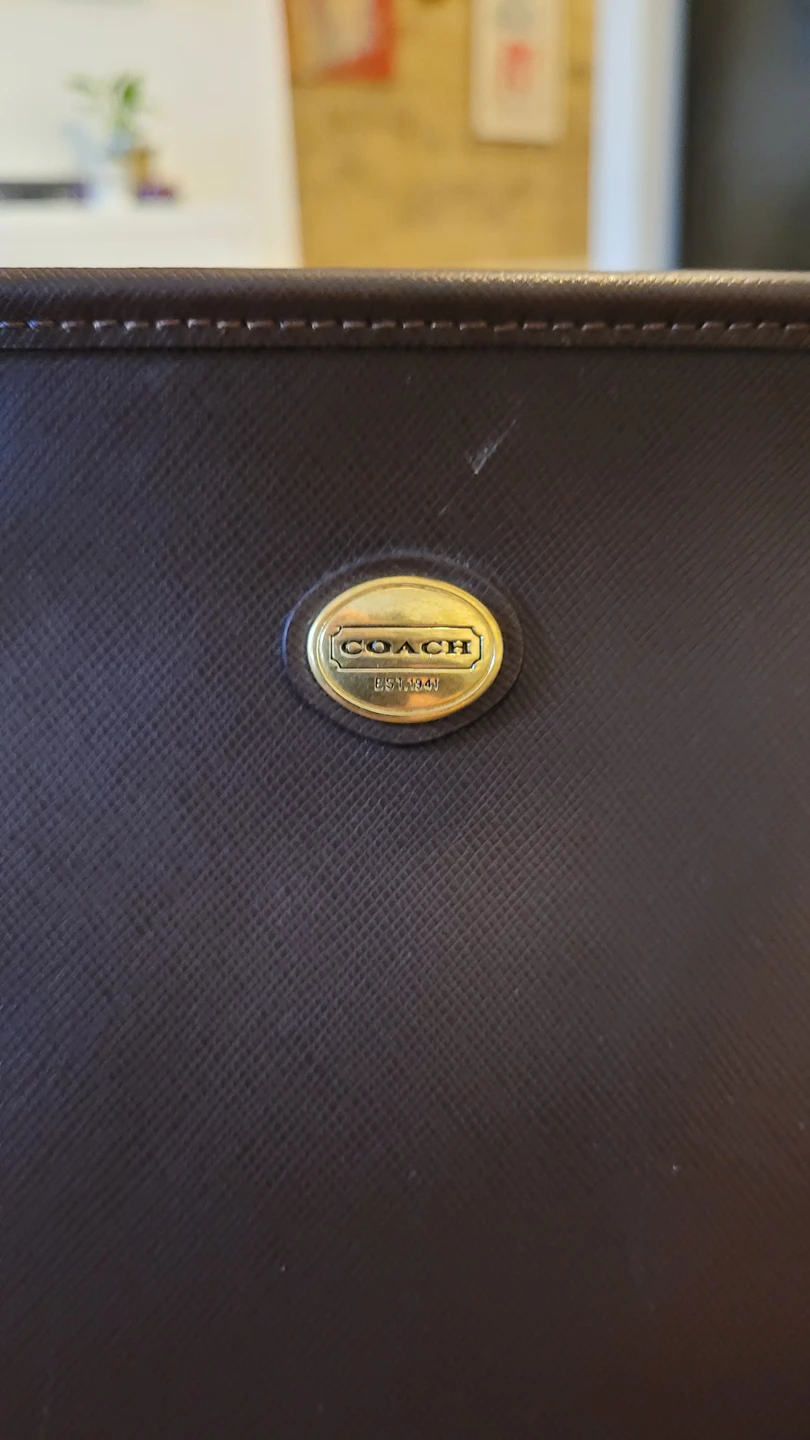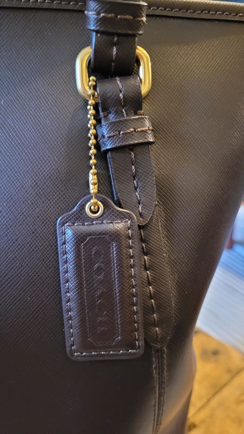 New, never used, Mahogany/brass COACH Zip Top Tote. From the COACH Creed emblem inside, this tote is: K1395 (K= made in October, 13= made in 2013, 95= manufacturing location) F27349 (F= made for factory outlet, 27349= coach style #, in this case the zip top tote) Leather Inside zip, cell phone and multifunction pockets Zip-top closure, fabric lining Handles with 8 1/2" drop 13 1/4" (L) x 10 3/4" (H) x 6 1/4" (W) Originally purchased for $125 (outlet tag still attached), asking for $75. Pickup and King W and Jameson Ave.