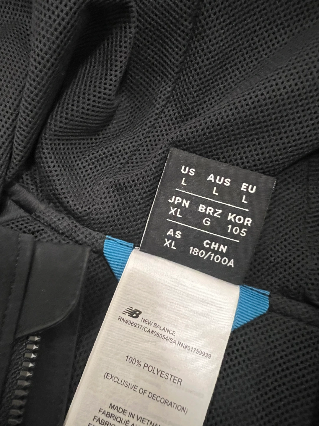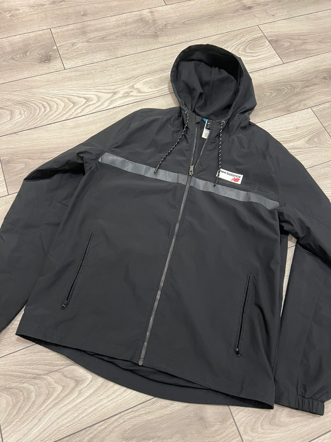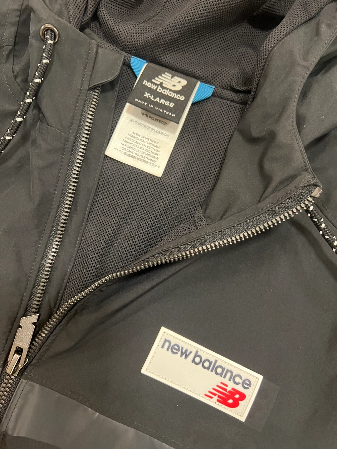 -Men's black New Balance windbreaker -Size XL -Features a hood and zipper closure -100% polyester