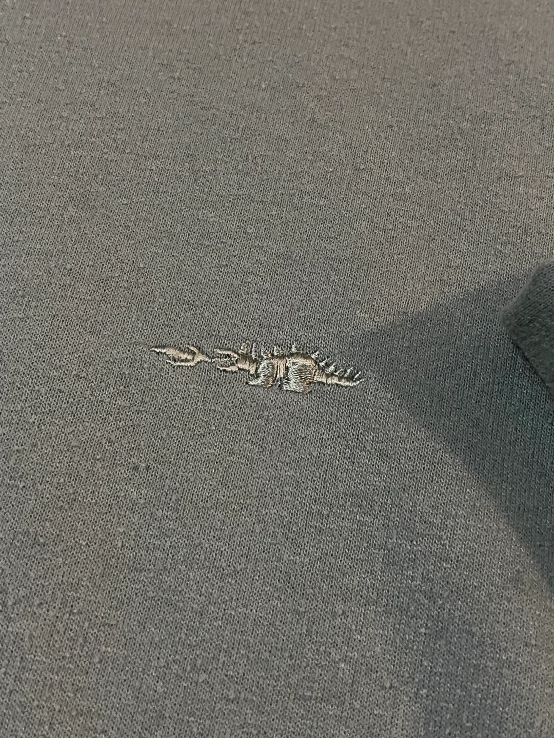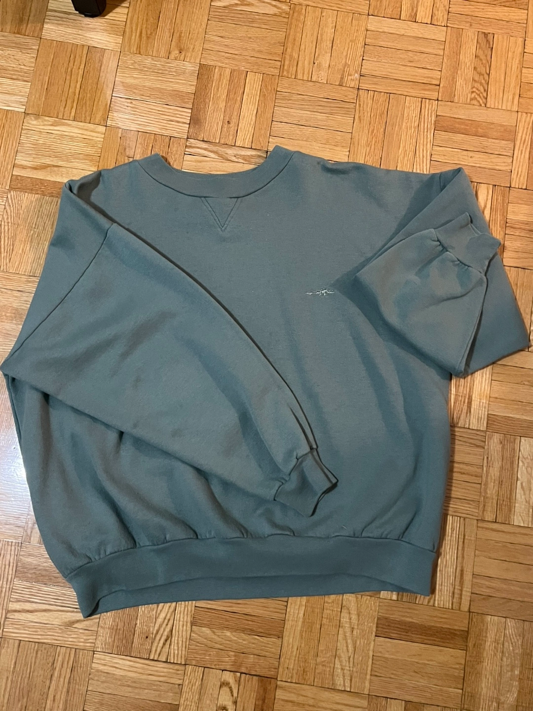 Olive green crewneck sweatshirt. Small embroidered logo on the left chest. Long sleeves, ribbed cuffs and hem. Relaxed fit.