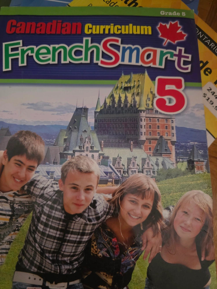 French language textbook. Grade 5 level. Canadian curriculum. Features images of Quebec City.