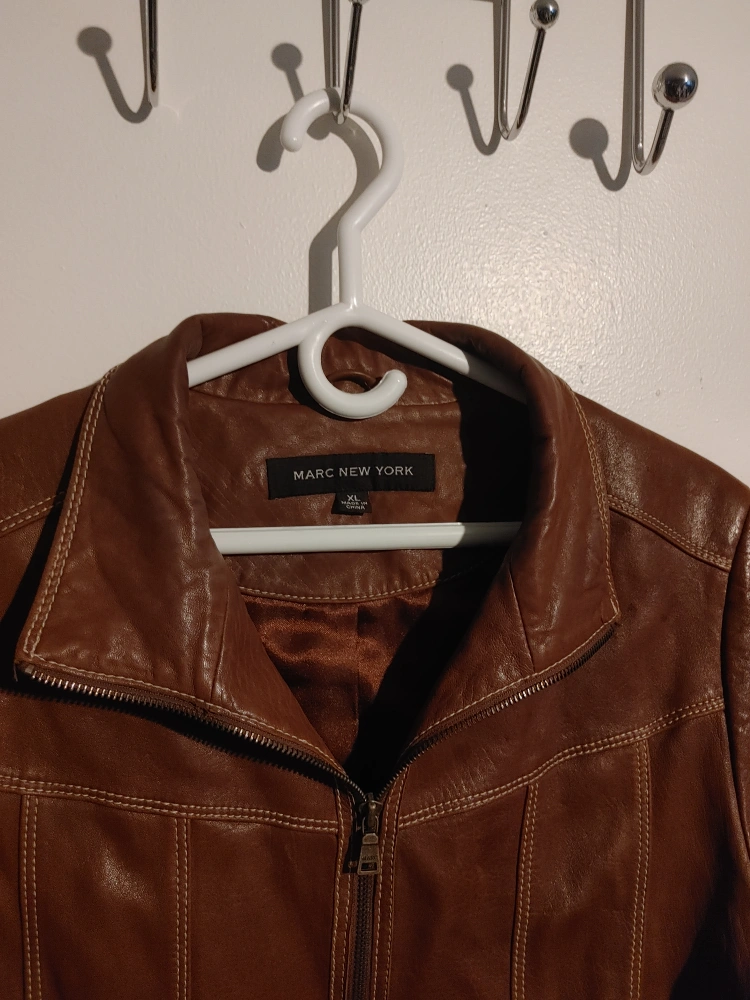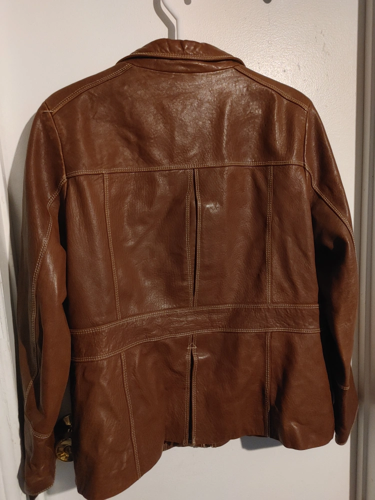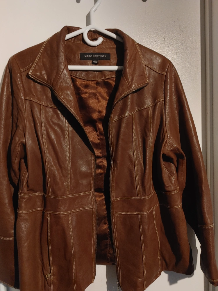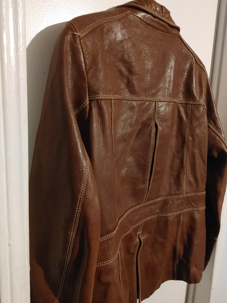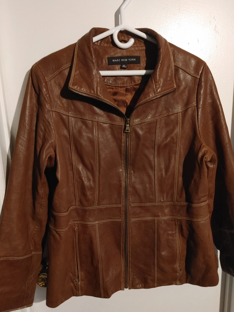 🥕BATHE YOUR BODY IN LUXURY WITH THIS SCRUMPTIOUSLY SOFT LEATHER JACKET. YOU MUST FEEL THE QUALITY. NO EXAGGERATIONS, THIS IS HEAVENLY! 🥕WOMANS GENUINE LAMBSKIN JACKET 🥕CHESTNUT BROWN COLOR 🥕RETAIL VALUE OF $500 🥕WORN THREE OR FOUR TIMES 🥕SMALL BLEMISH. (SEE LAST PHOTO) 🥕9/10 CONDITION. SEE MY FEEDBACK AND BUY WITH ULTIMATE CONFIDENCE. 🥕I AM LOCATED IN THE YONGE AND STEELES AREA FOR PICK UP.