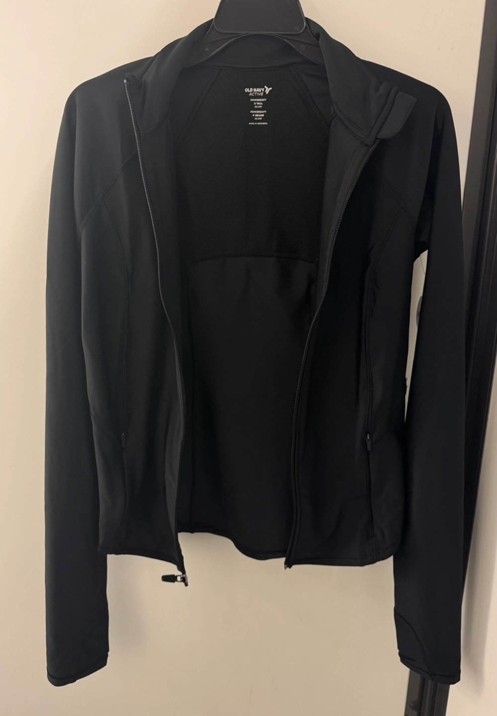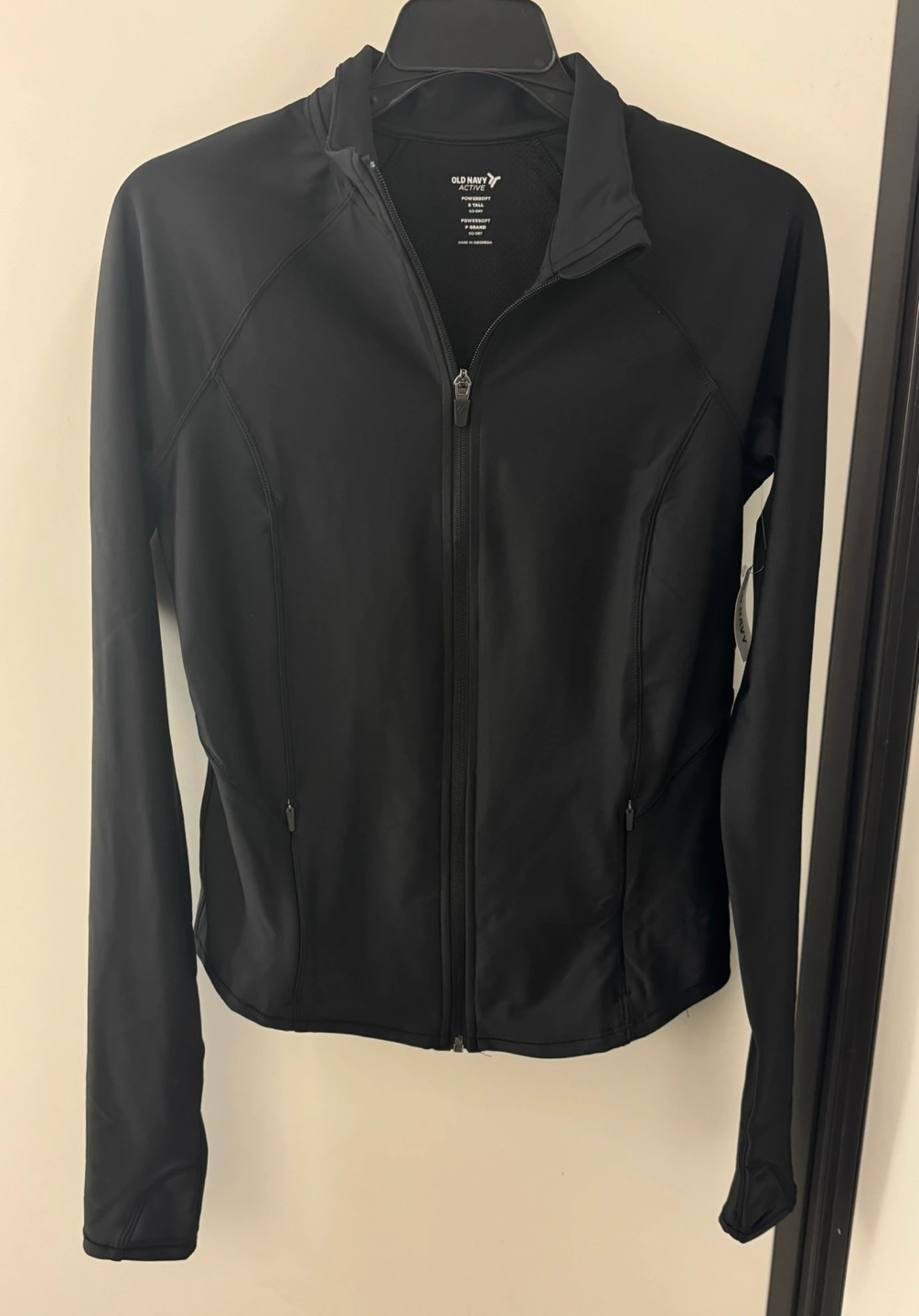 NEW WITH TAG old navy black tight fit athletic jacket (lulu define dupe) size small-tall Stretchy, very flattering. Fits up to a size medium depending on how tight you want it. Tall size basically just means it’s a bit longer in length, hits closer to hip bone vs at the waist. Has thumbholes and two zippered pockets, made with smooth sweat wicking material. Basically identical to the luluemon define jacket lol. Great for the gym! Bought for $55+tax, selling for $25. Price is firm, cash only please. Pickup downtown Toronto/Jarvis & Gerrard/Yonge & Dundas or we can arrange to meet along TTC line 1.