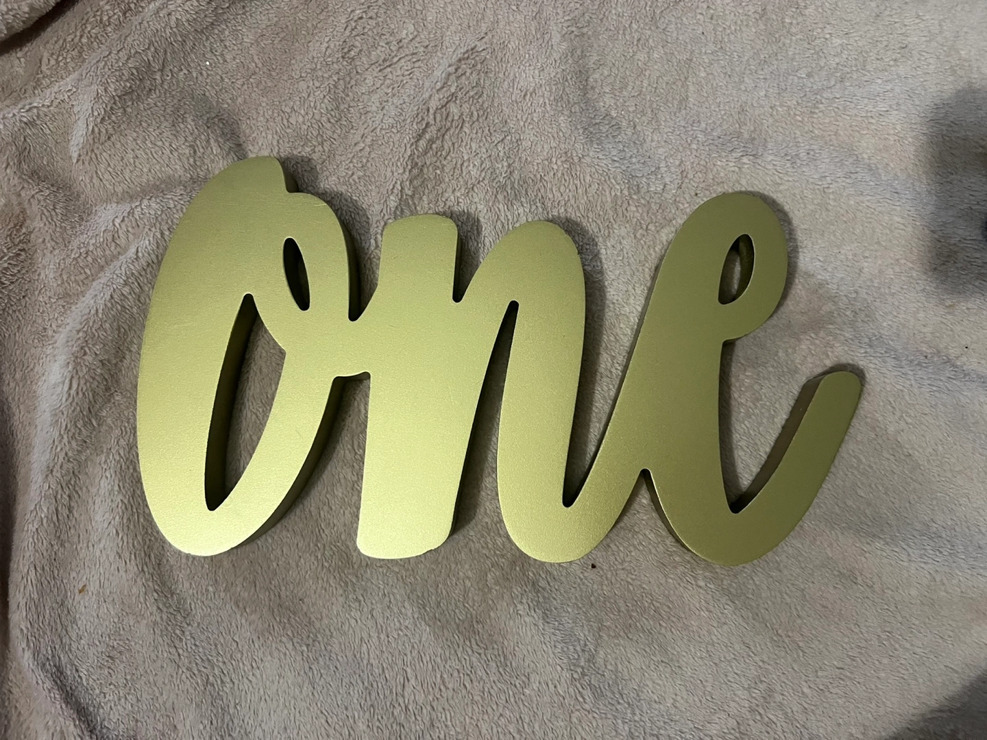 Large gold wooden number one. Perfect for a first birthday party. Freestanding design. Lightly used. Pick up only Located near Mt. Pleasant and Eglinton Ave East
