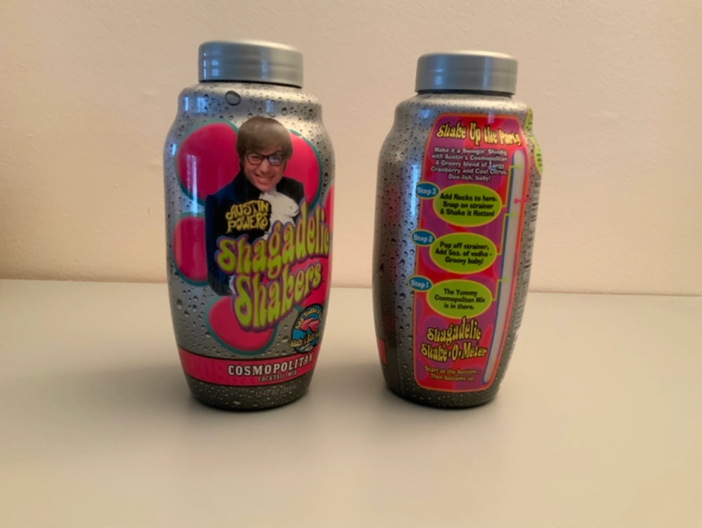 Two vintage Austin Powers Shagadelic Shakers Cosmopolitan. 12 oz. Empty Plastic Bottles. Each $10. Pick up Location, Harmony Rd., Adelaide Oshawa.