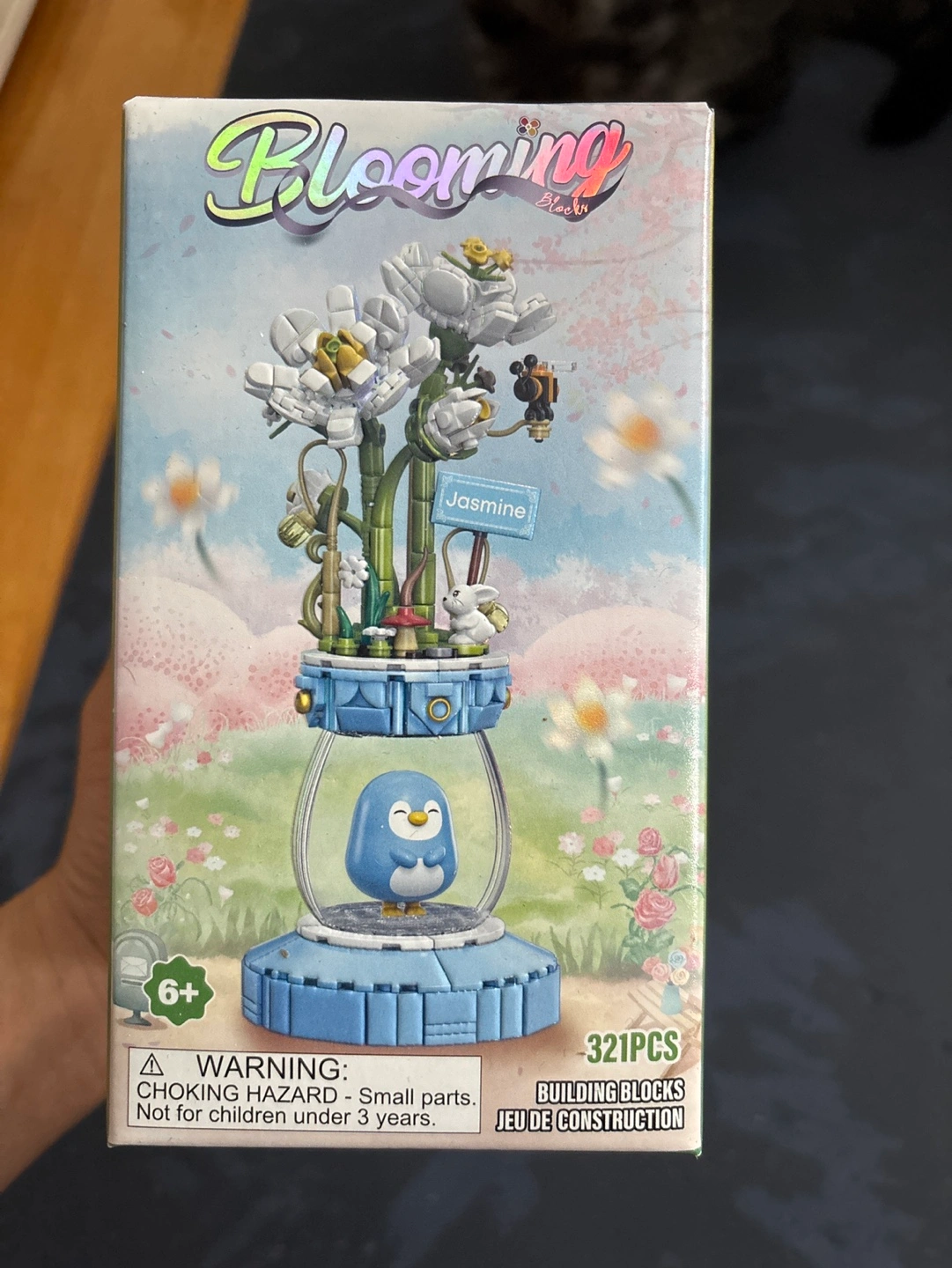 New, unopened Blooming Blocks Jasmine building set. 321 pieces. Features a cute penguin and flowers. Recommended for ages 6+. Choking hazard; small parts.