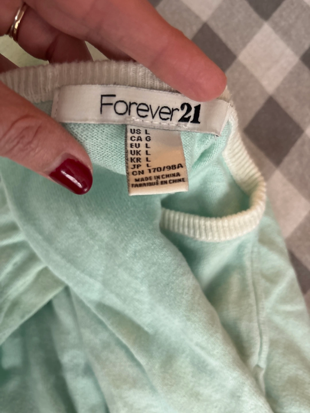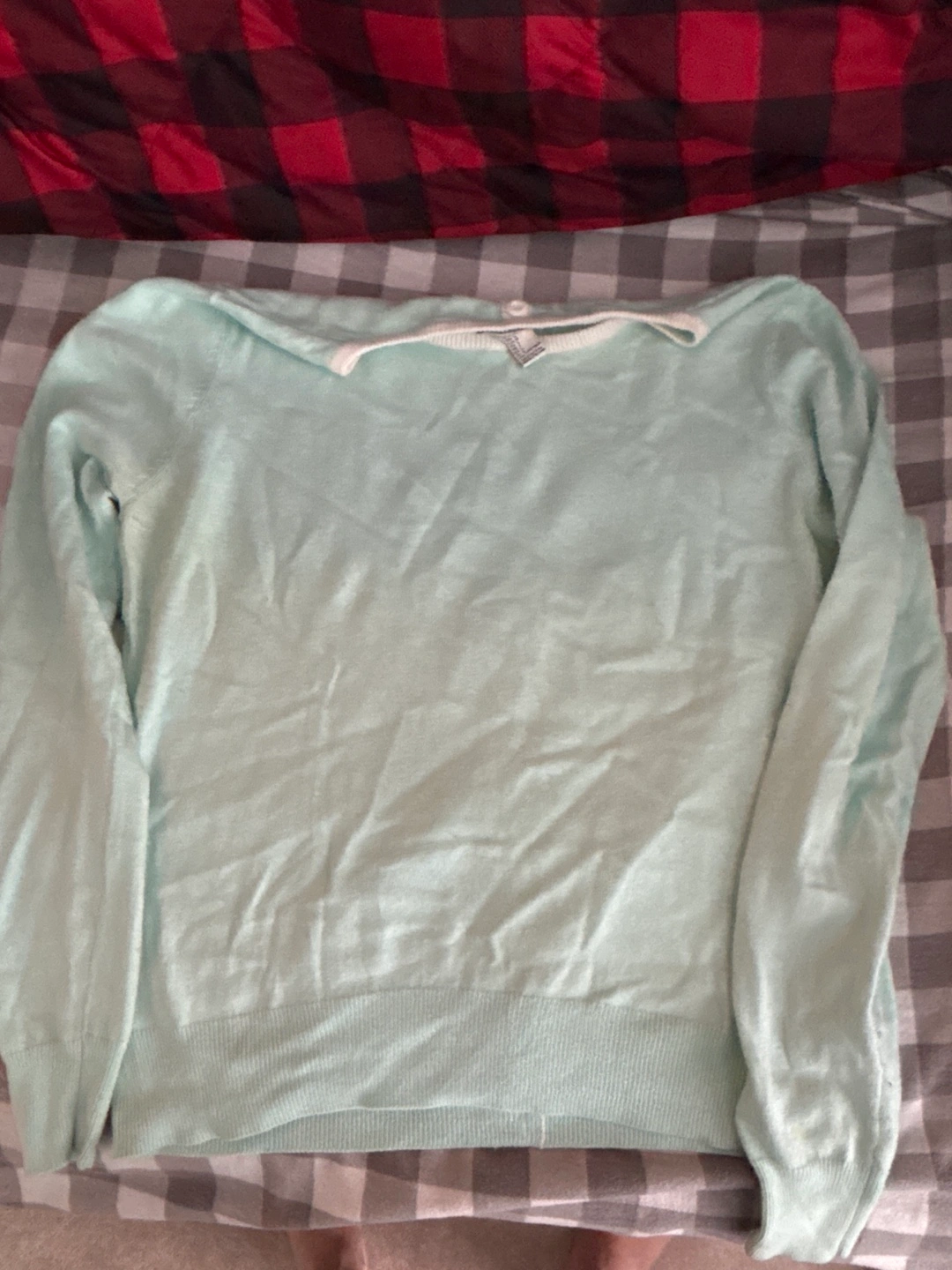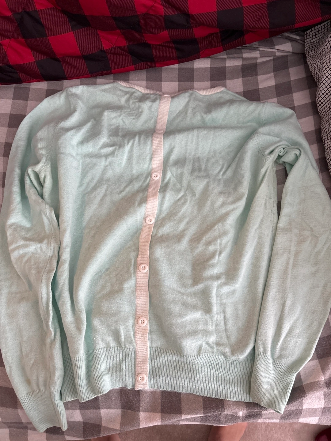 Light mint green long-sleeve cardigan. Button closure down the back. Size Large. Vintage Forever 21