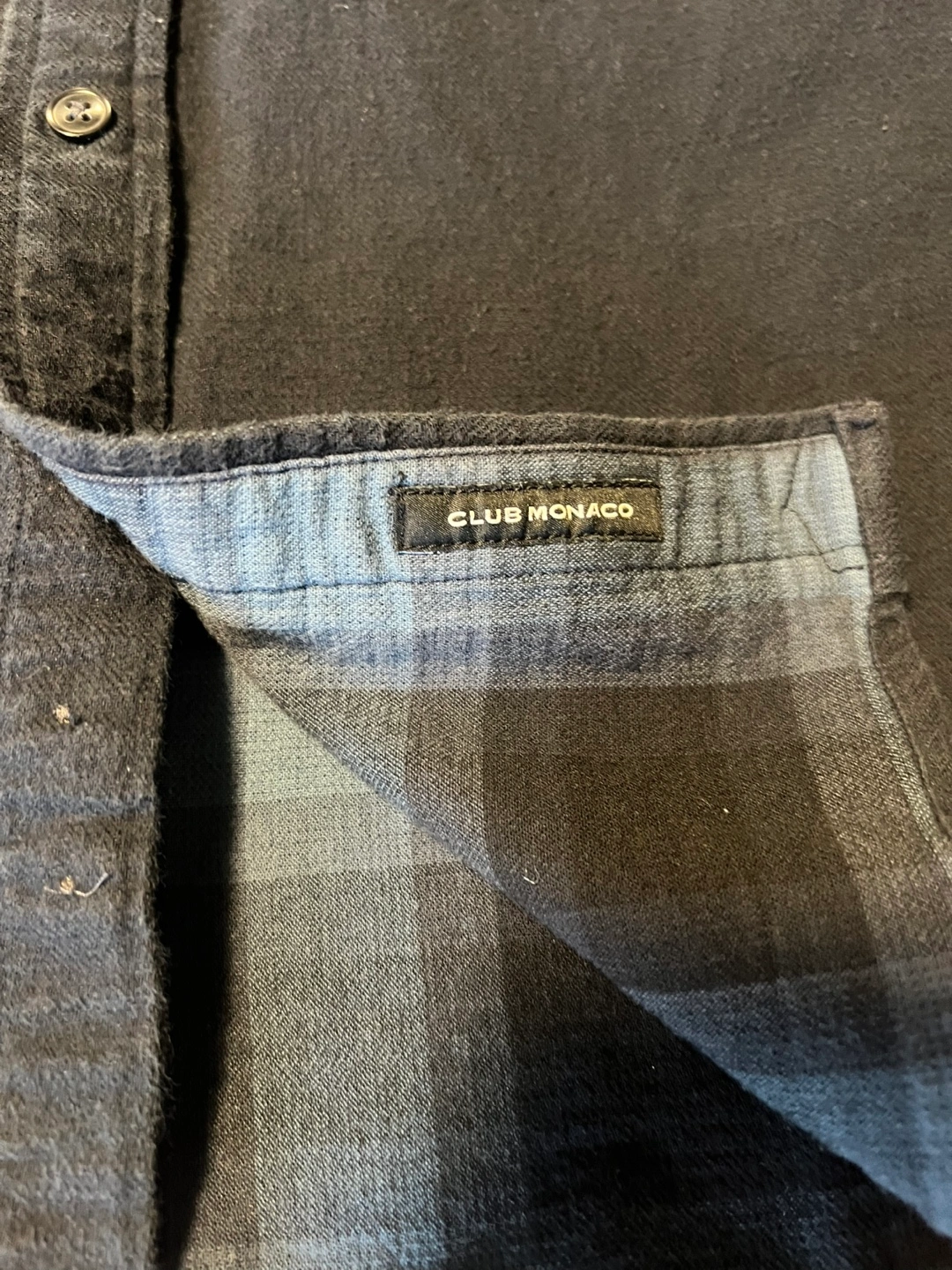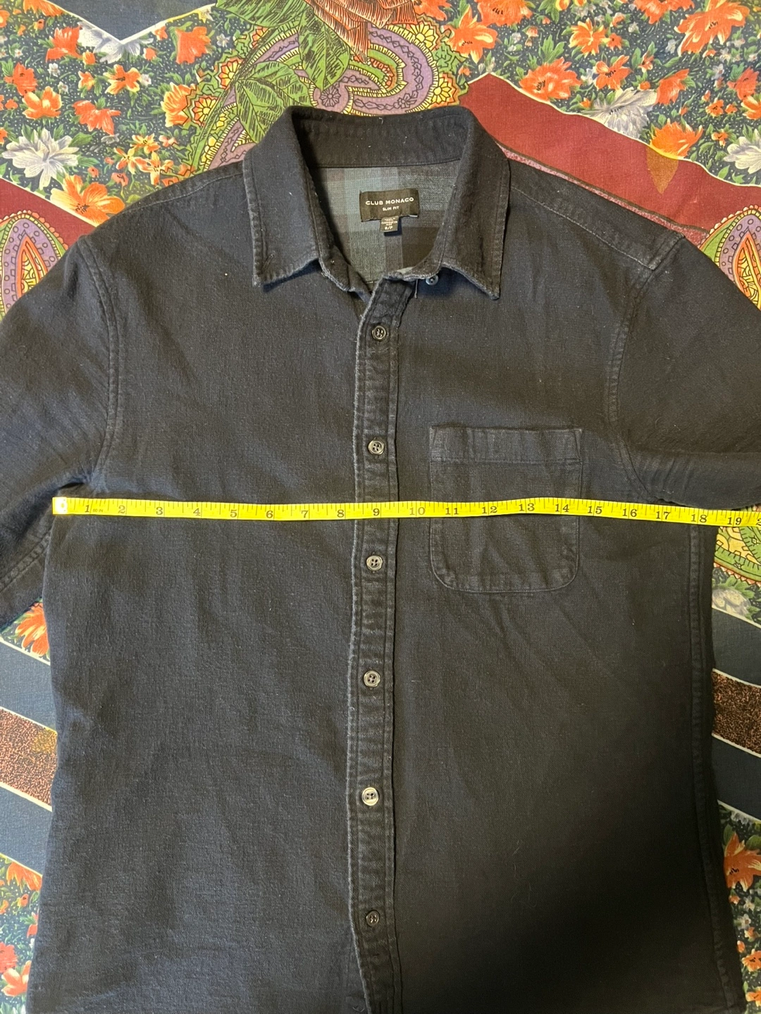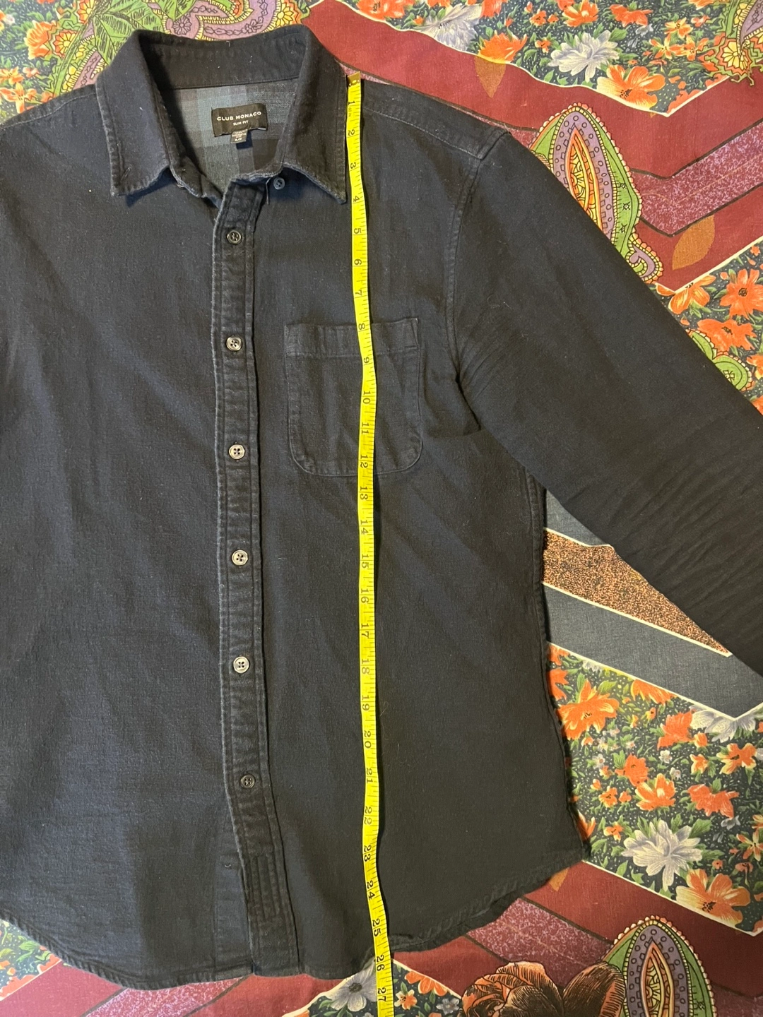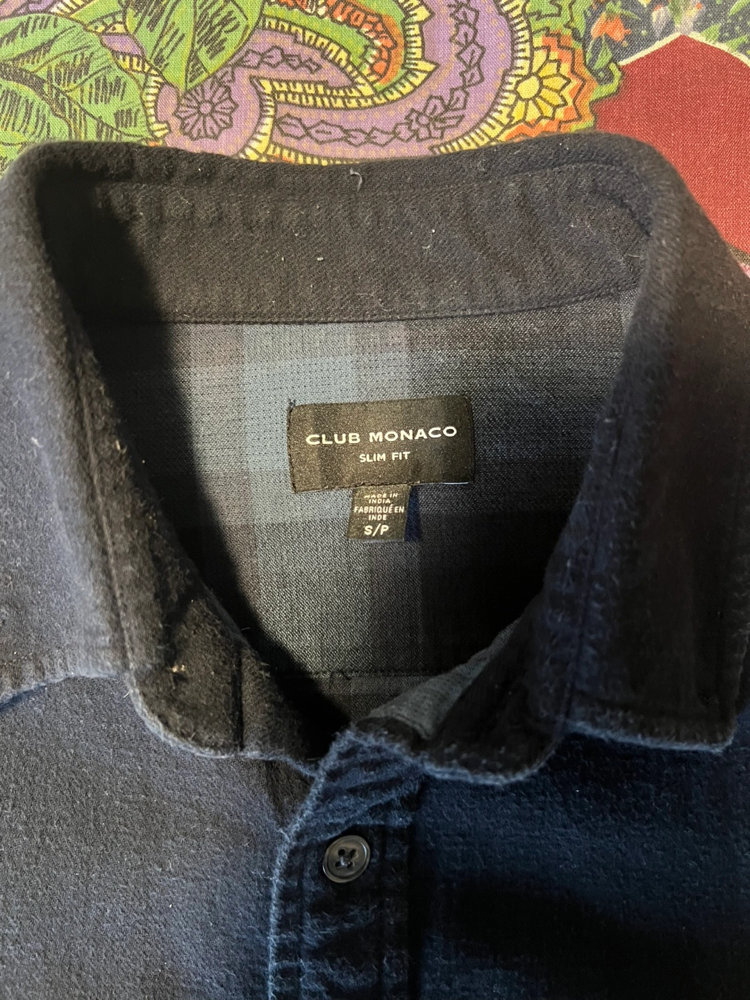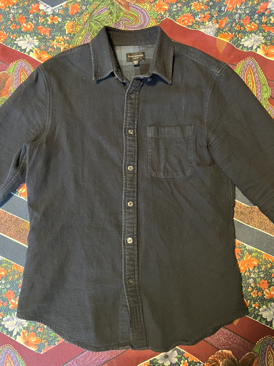 Men's long-sleeve button-down shirt. Navy blue colour. Flannel. Features a chest pocket. Excellent for layering or wearing alone. Cash Rossland & Salem Area Pickup (Ajisen Ramen 334 Rossland Rd E) Smoke Free Home ๐ก Sanitized and Washed Thoroughly ๐งบ Bundle to Save More ๐ Offers and Questions are Welcome ๐
