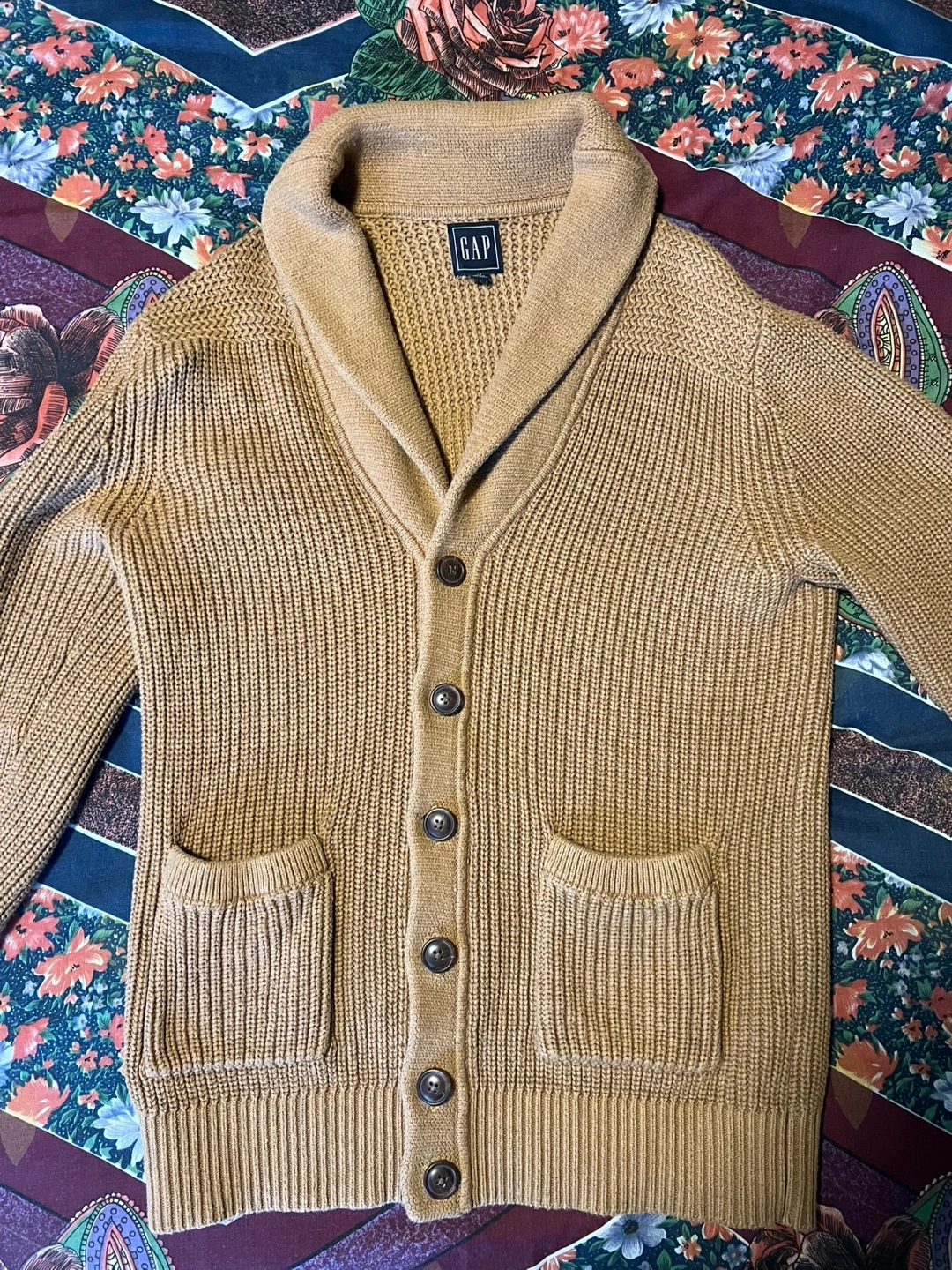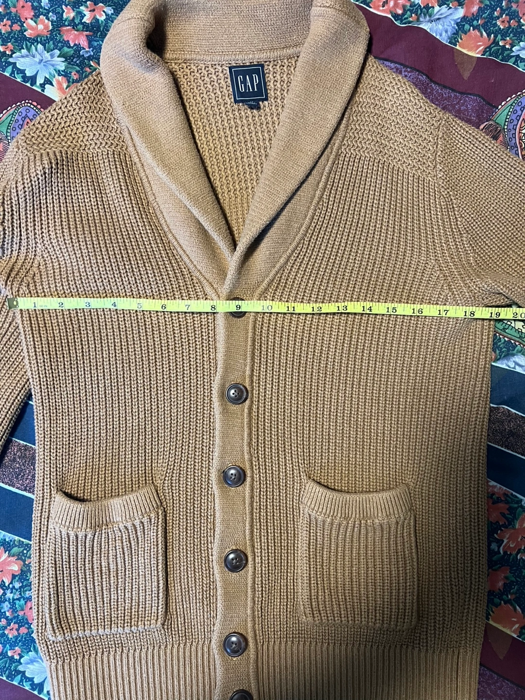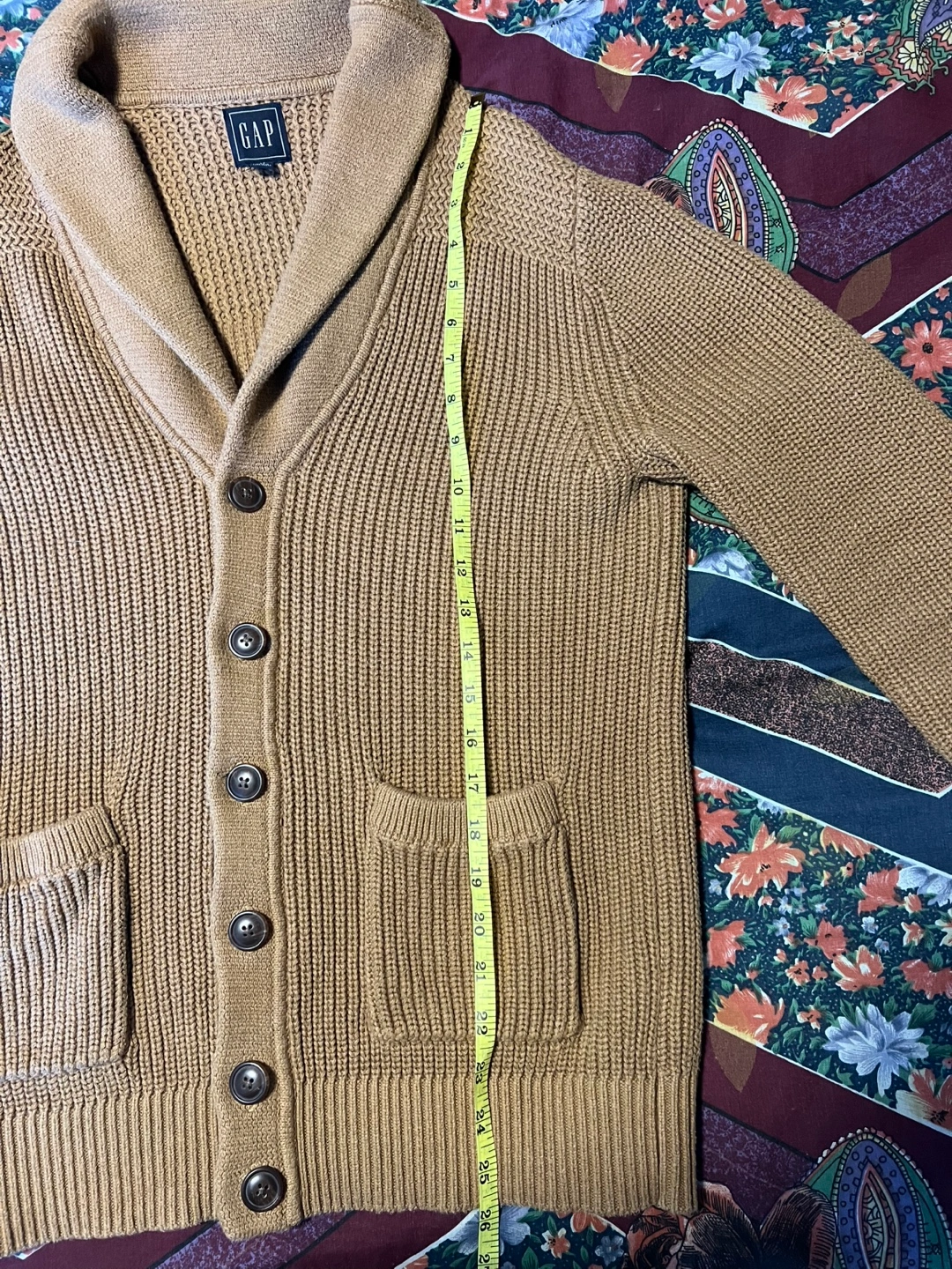 Light brown coloured men's cardigan. Shawl collar, ribbed knit. Features front pockets and button closure. Excellent used condition. Cash McNicoll & Midland Area Pickup (3720 Midland Avenue, Toronto, CA M1V 4V3) Smoke Free Home ๐ก Sanitized and Washed Thoroughly ๐งบ Bundle to Save More ๐ Offers and Questions are Welcome ๐
